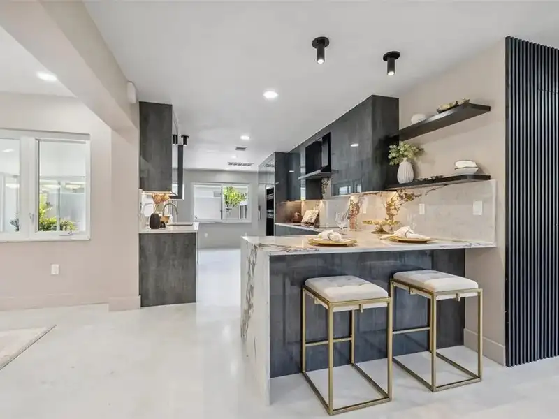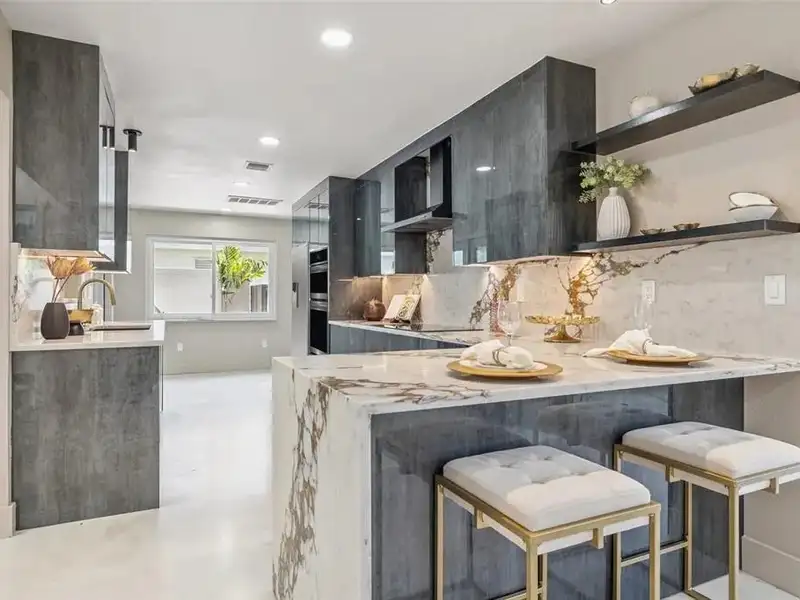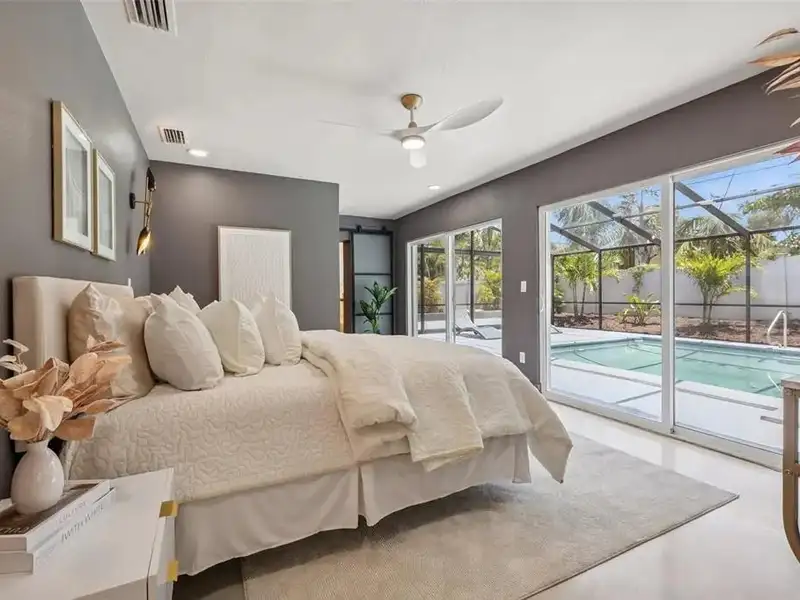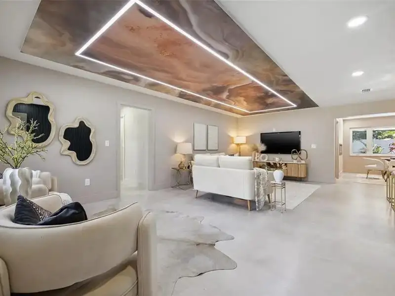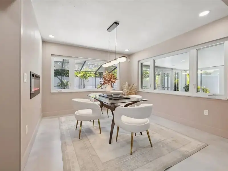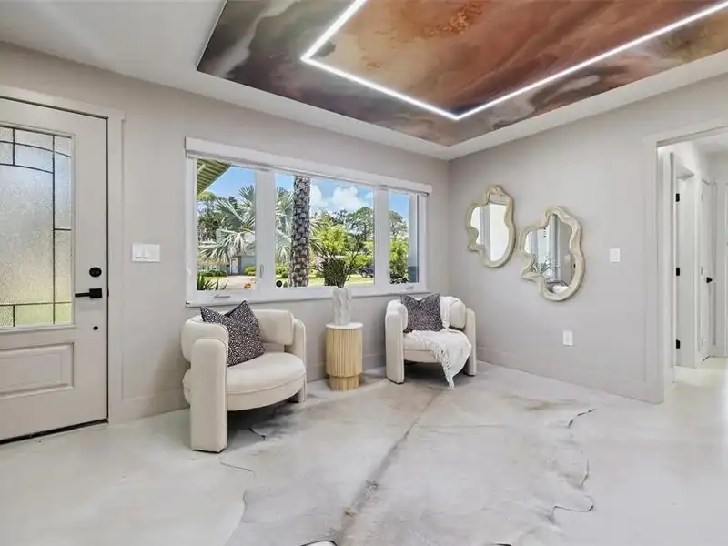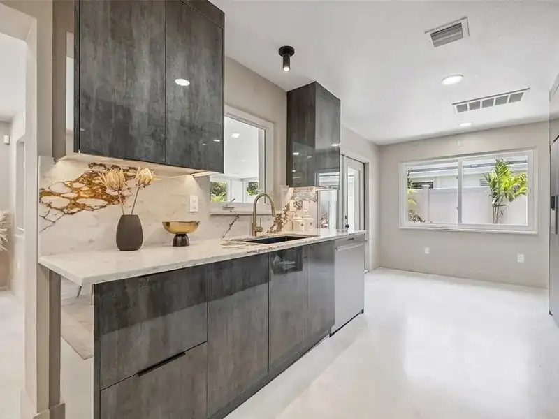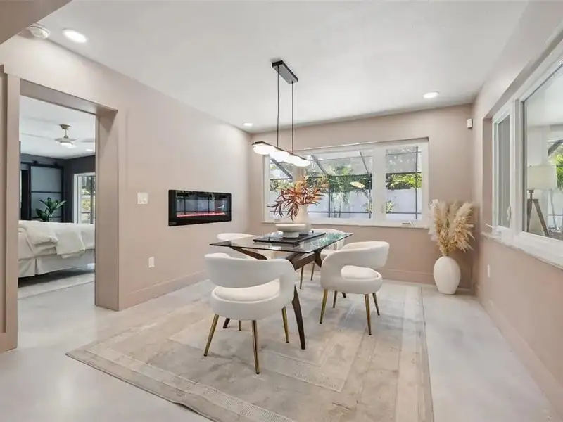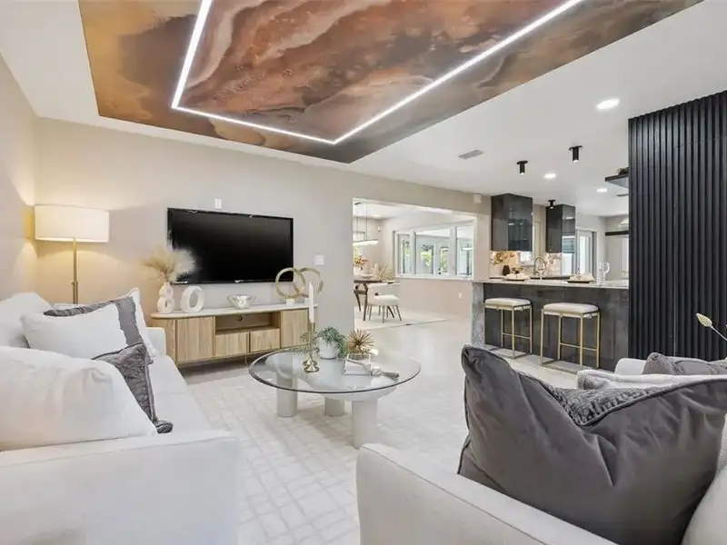 Florida Coastal meets Manhattan Sophistication at this expertly crafted, move-in ready pool residence situated just one lot off the world-famous Vinoy Golf & Country Club in desirable Snell Isle. Prepare to be amazed as you step inside, where every detail has been designed to impress and every space tells a story. Curated by the award-winning design house, Misari Design Collective, this totally reimagined three (3) bedroom, three (3) bathroom pool home shows as if it’s been ripped from the pages of Architectural Digest. From the moment you enter, the main focal point of the architectural ceiling captures your attention. This ceiling showcases a striking architectural drop-down panel with a custom backlit insert, designed to evoke the natural movement and depth of polished agate or marble stone. The floating effect, emphasized by the clean reveal edges, adds dimensional drama and acts as a central sculptural element in the space. Integrated LED perimeter lighting (concealed behind the dropped frame) enhance the ambient glow, creating a gallery-like atmosphere. The use of warm, earthy mineral tones on the ceiling balances beautifully with the polished concrete flooring below, unifying organic and industrial design elements. This is truly a one-of-a-kind residence you will not find anywhere else that features nearly 1,900 square feet of living space, a large two (2) car garage with ample storage, and a den/bonus room. The laundry has been thoughtfully relocated inside the main home. Just behind the kitchen is where you’ll find a hidden door to the new laundry room that blends seamlessly with the fluted feature wall for a clean, modern look. The show-stopping kitchen will take your breath away. From the Italian lacquer cabinets, quartzite counter with waterfall edge and counter splash, to the floating shelves, luxury appliance suite, and custom lighting, this is a kitchen that will impress even the most discerning of chefs. The primary owner’s retreat and en suite bathroom—with its sizeable walk-in closet—have also undergone a complete luxury redesign. The ensuite bath showcases a custom-lit floating vanity, backlit mirror, and bespoke LED inserts in the ceiling. Enjoy long soaks in the garden tub surrounded by the custom textured walls that might trick you into thinking you’re enjoying a spa day at a 5-star resort in Greece. You’ll enjoy the added peace of mind for years to come with a newer HVAC (2023), newer water heater, new electric (2025), updated plumbing, and fresh paint inside and out that add to the home's curb appeal, creating a welcoming atmosphere from the moment you arrive. Step outside beyond the fresh landscape design surrounding your new abode, and perhaps the most exciting feature of this home is the sparkling blue waters of your very own private pool oasis with plenty of deck space for your most social gatherings. Nestled on a quiet street in Snell, the location of this home is truly unbeatable. Walking distance to Crisp Park, Coffee Pot Park, and just minutes from downtown St. Petersburg, you can take your golf cart or bike to waterfront parks, museums, restaurants, and all the vibrant amenities the city has to offer. Whole Foods, Trader Joe’s, Publix, and Fresh Market are also right around the corner. Call today to experience the pinnacle of Florida living where high design meets coastal urban relaxation.