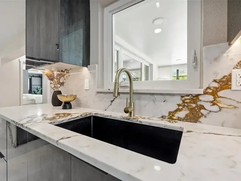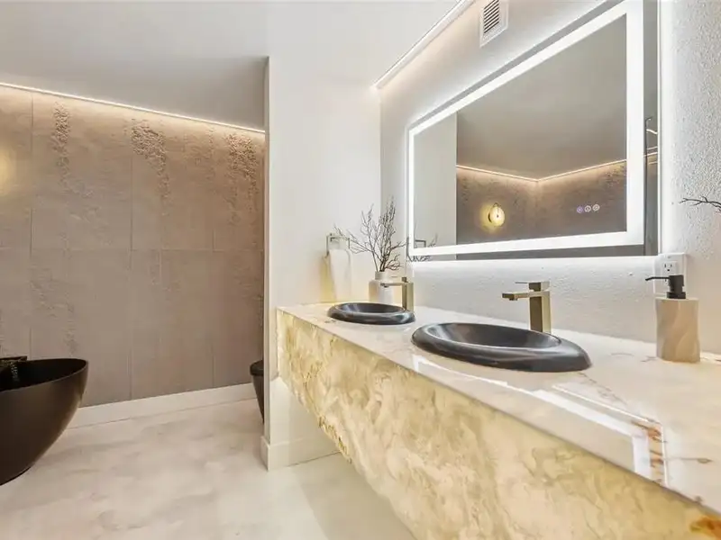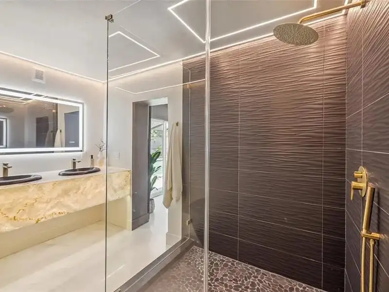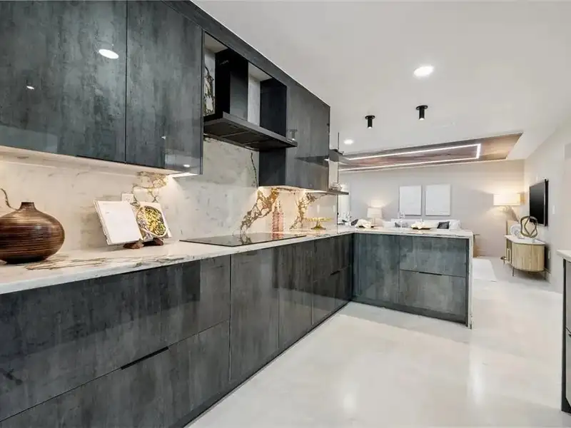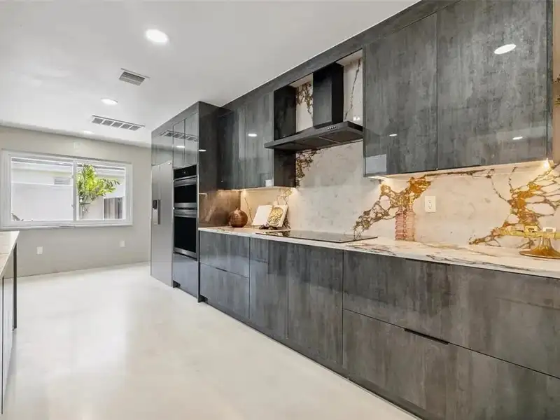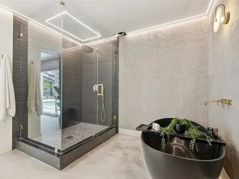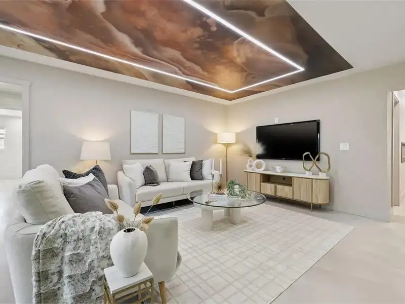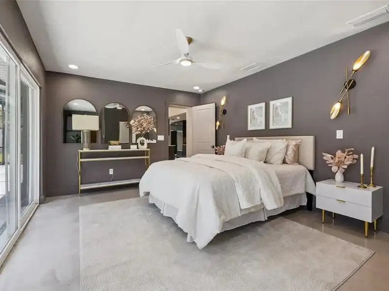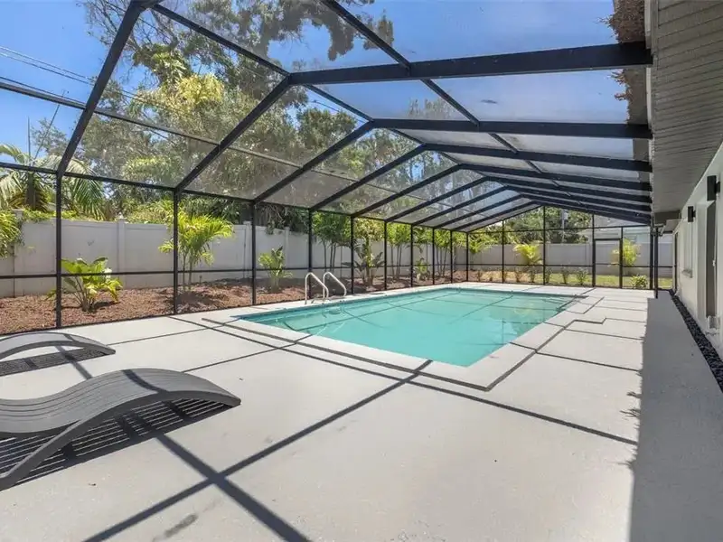 Florida Coastal meets Manhattan Sophistication at this expertly crafted, move-in ready pool residence situated just one lot off the world-famous Vinoy Golf & Country Club in desirable Snell Isle. Prepare to be amazed as you step inside, where every detail has been designed to impress and every space tells a story. Curated by the award-winning design house, Misari Design Collective, this totally reimagined three (3) bedroom, three (3) bathroom pool home shows as if it’s been ripped from the pages of Architectural Digest. From the moment you enter, the main focal point of the architectural ceiling captures your attention. This ceiling showcases a striking architectural drop-down panel with a custom backlit insert, designed to evoke the natural movement and depth of polished agate or marble stone. The floating effect, emphasized by the clean reveal edges, adds dimensional drama and acts as a central sculptural element in the space. Integrated LED perimeter lighting (concealed behind the dropped frame) enhance the ambient glow, creating a gallery-like atmosphere. The use of warm, earthy mineral tones on the ceiling balances beautifully with the polished concrete flooring below, unifying organic and industrial design elements. This is truly a one-of-a-kind residence you will not find anywhere else that features nearly 1,900 square feet of living space, a large two (2) car garage with ample storage, and a den/bonus room. The laundry has been thoughtfully relocated inside the main home. Just behind the kitchen is where you’ll find a hidden door to the new laundry room that blends seamlessly with the fluted feature wall for a clean, modern look. The show-stopping kitchen will take your breath away. From the Italian lacquer cabinets, quartzite counter with waterfall edge and counter splash, to the floating shelves, luxury appliance suite, and custom lighting, this is a kitchen that will impress even the most discerning of chefs. The primary owner’s retreat and en suite bathroom—with its sizeable walk-in closet—have also undergone a complete luxury redesign. The ensuite bath showcases a custom-lit floating vanity, backlit mirror, and bespoke LED inserts in the ceiling. Enjoy long soaks in the garden tub surrounded by the custom textured walls that might trick you into thinking you’re enjoying a spa day at a 5-star resort in Greece. You’ll enjoy the added peace of mind for years to come with a newer HVAC (2023), newer water heater, new electric (2025), updated plumbing, and fresh paint inside and out that add to the home's curb appeal, creating a welcoming atmosphere from the moment you arrive. Step outside beyond the fresh landscape design surrounding your new abode, and perhaps the most exciting feature of this home is the sparkling blue waters of your very own private pool oasis with plenty of deck space for your most social gatherings. Nestled on a quiet street in Snell, the location of this home is truly unbeatable. Walking distance to Crisp Park, Coffee Pot Park, and just minutes from downtown St. Petersburg, you can take your golf cart or bike to waterfront parks, museums, restaurants, and all the vibrant amenities the city has to offer. Whole Foods, Trader Joe’s, Publix, and Fresh Market are also right around the corner. Call today to experience the pinnacle of Florida living where high design meets coastal urban relaxation.