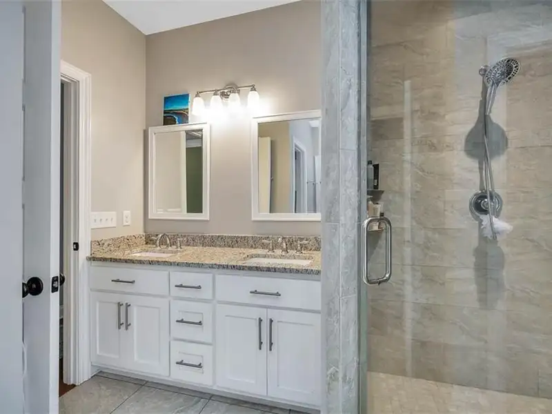 - Primary suite with dual vanities and soaking tub