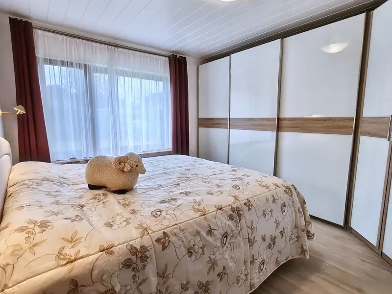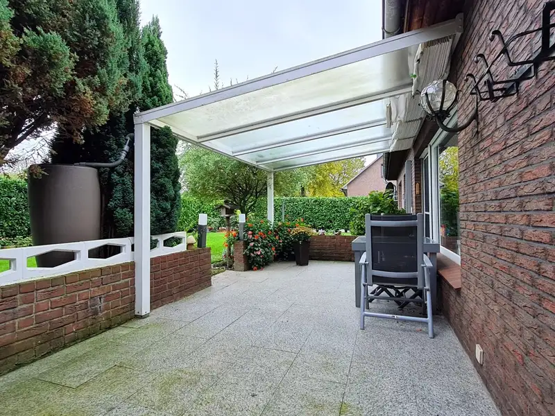 Extensive modernization work was carried out in 2014. The bathroom was completely renovated, as was the driveway and the garage door, which is equipped with an electric roller mechanism and guarantees convenient parking. The patio roof, built in 2017, creates a sheltered outdoor area that is ideal for relaxing outdoors. Floor-to-ceiling doors provide barrier-free access to the terrace and the lovingly landscaped garden.