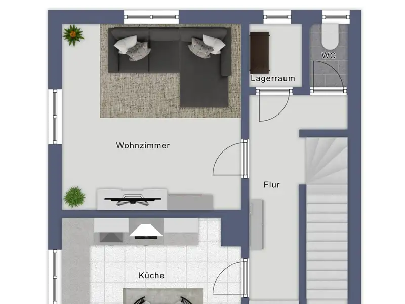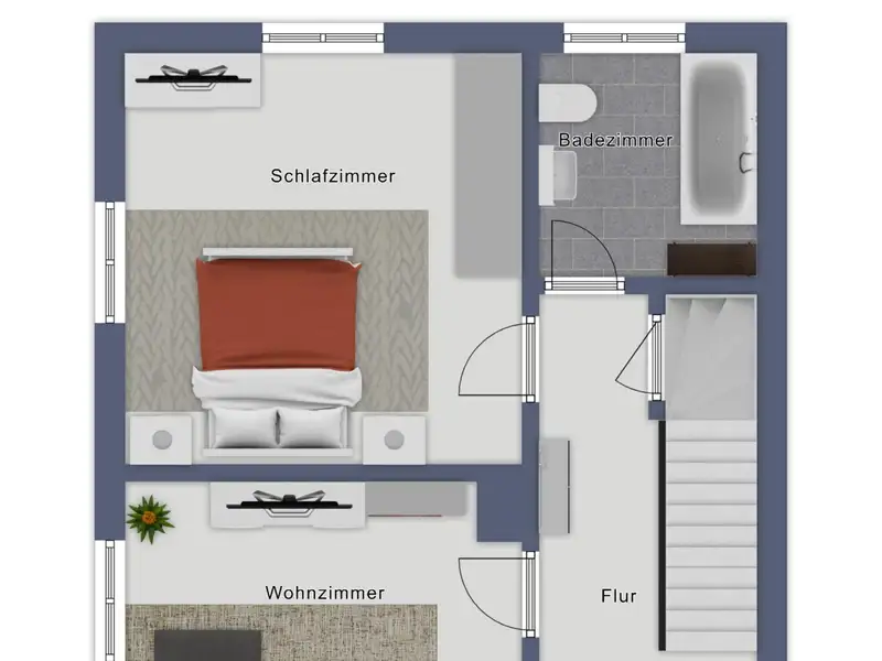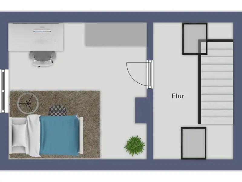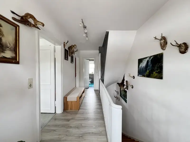 On the first floor, you are greeted by a bright, friendly entrance area from which all rooms are easily accessible. The light-flooded, cozy kitchen invites you to cook and linger together (not included in the purchase price), while the adjoining living room with its windows offers a view of the sunny garden - an ideal place for relaxing hours or social gatherings. The first floor is complemented by a practical storage room and a guest WC.