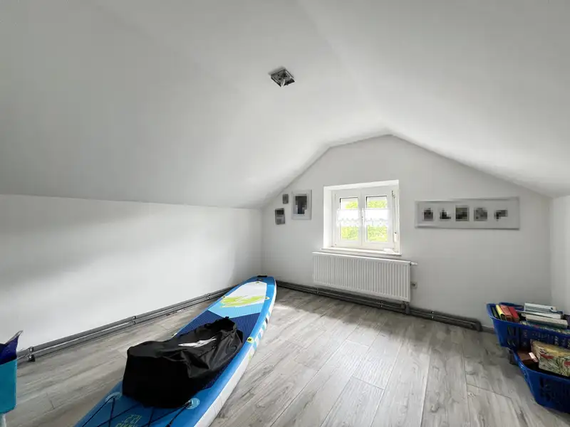 On the upper floor, you will find two versatile, light-flooded rooms that are perfect as bedrooms, studies or children's rooms, as well as a bright bathroom with a bathtub - a place to relax and feel good. The converted top floor surprises with an inviting entrance hall and a spacious, sun-drenched room that is ideal for work, hobbies or guests.