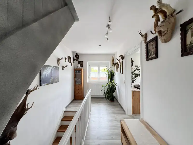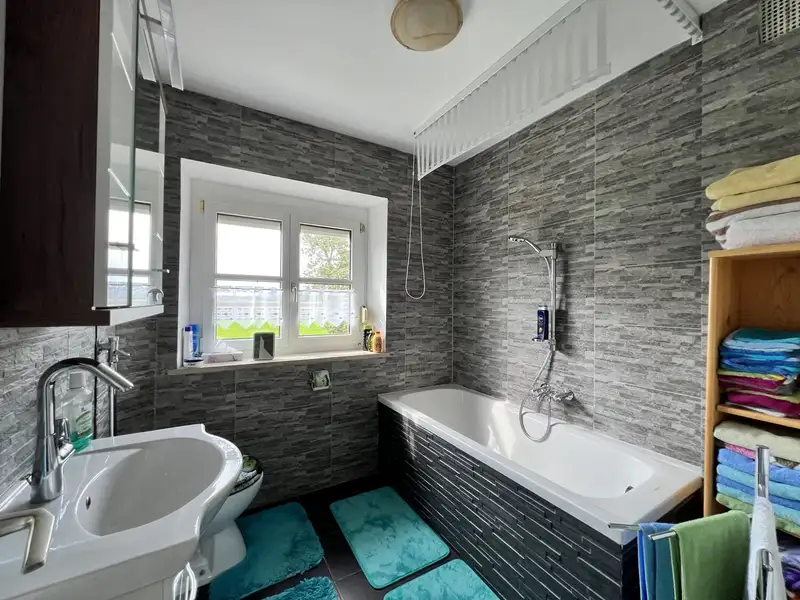 With around 101 m² of living space, the house is in an attractive and modernized condition. Full thermal insulation and new windows with shutters were installed back in 1993. In 2020, the floors, the bathroom, the garden fence and in 2021 the heating were modernized and brought up to date. The heating is particularly sustainable and future-oriented: A modern pellet heating system is supported by five solar collectors in the garden. The associated buffer storage tank is conveniently located in the boiler room in the basement.