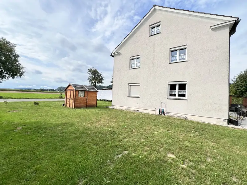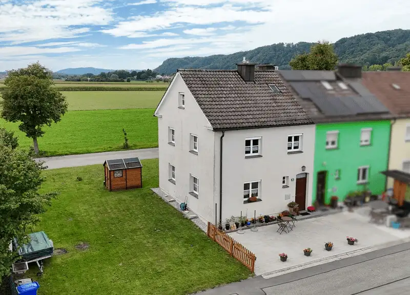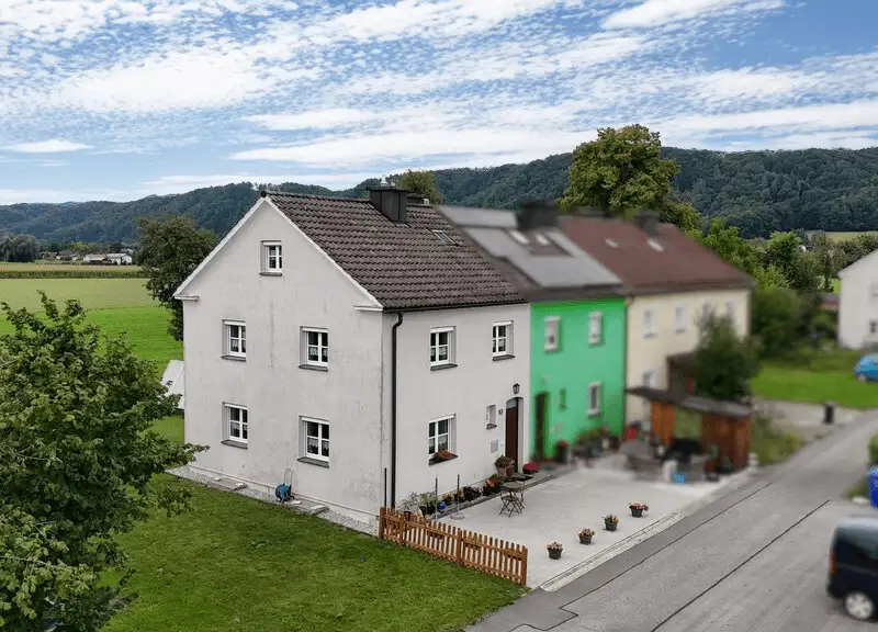 This charming terraced corner house in Stammham near Marktl enchants with its solid brick construction from 1953, a well thought-out room layout and a spacious plot of around 422 m². The quiet location provides privacy and relaxation: the house is set back from the road, while the fields opposite create an idyllic backdrop. The garden, which extends lovingly over two sides of the house, invites you to spend relaxing hours outdoors and be creative. A large driveway in front of the house rounds off the offer perfectly and makes everyday life pleasantly uncomplicated.