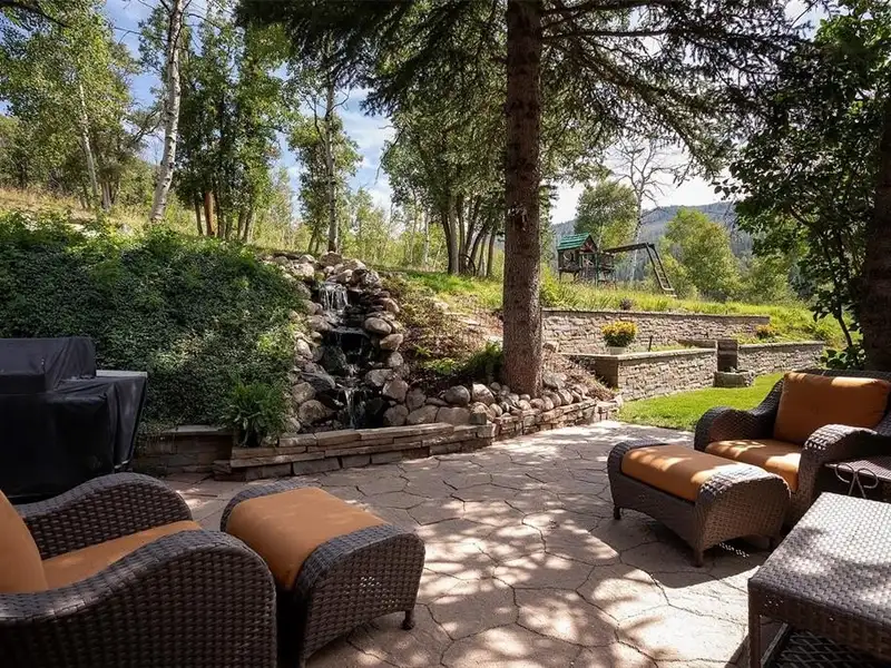 - Outdoor living with waterfall and firepit patio
