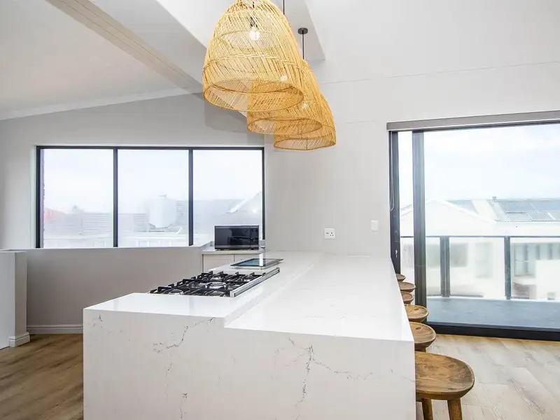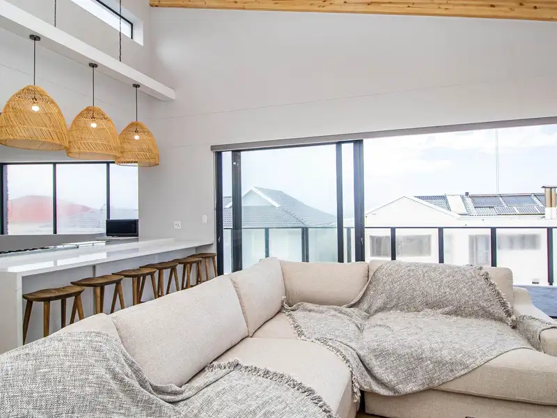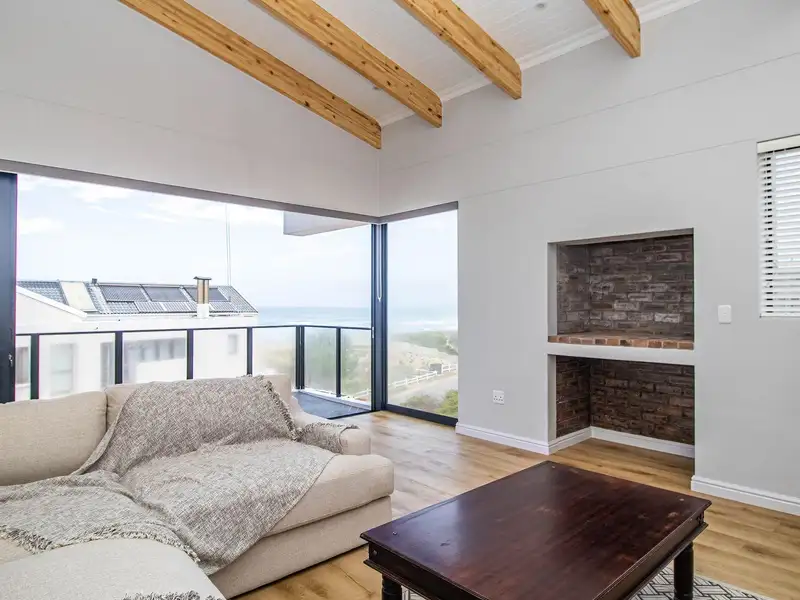 The open-plan living and dining area welcomes you with its spacious layout and natural light, flowing seamlessly to a stylish built-in braai/fireplace ΓÇö perfect for year-round entertaining. Step outside to the ocean-facing balcony where sweeping sea views set the scene for unforgettable sunsets.