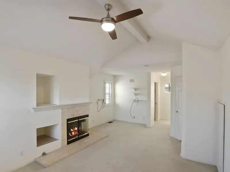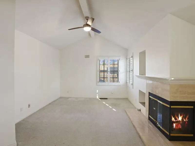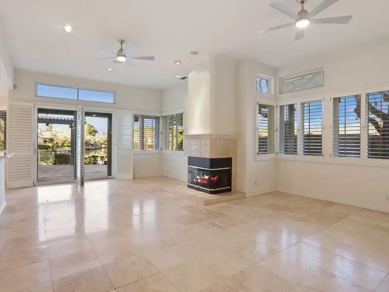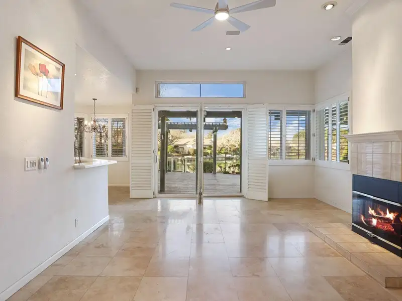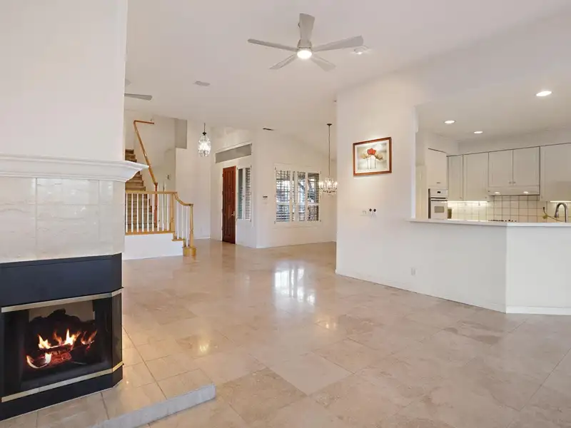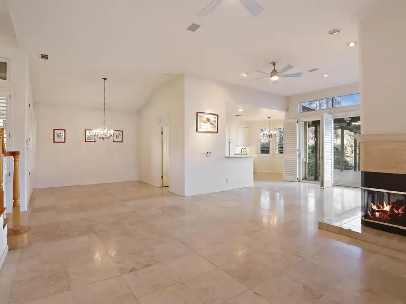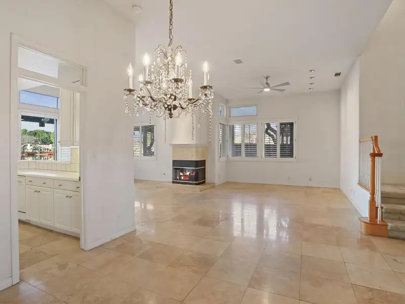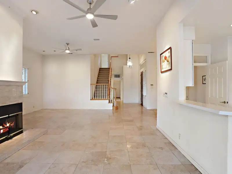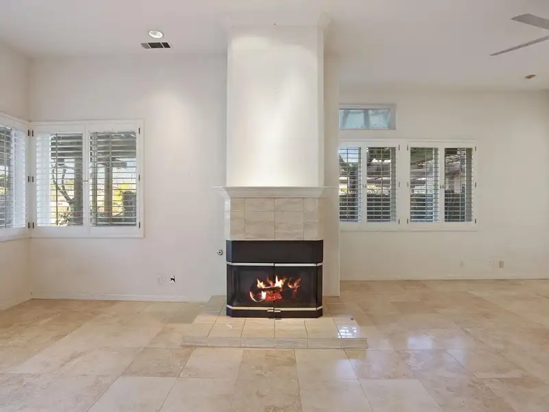 - Granite-tiled living room with fireplace