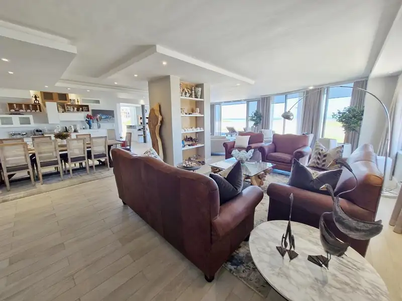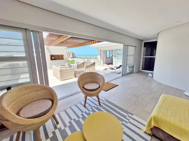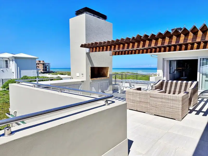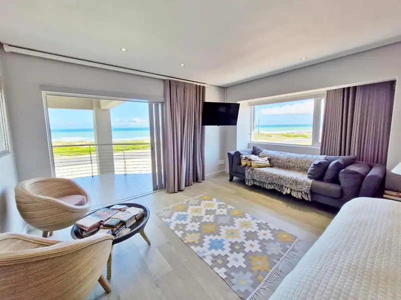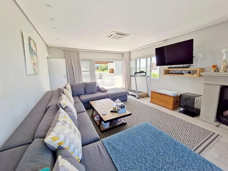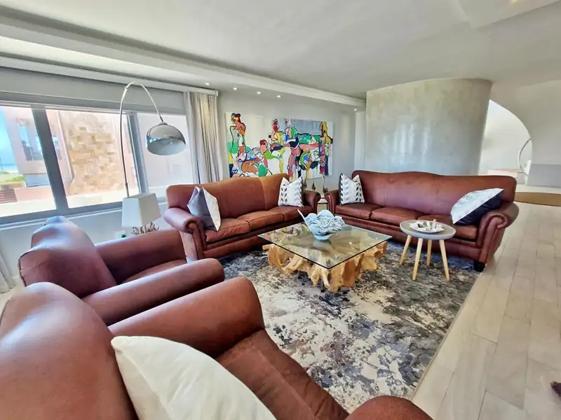 The upper level offers a serene retreat. A spacious lounge area with a kitchenette opens onto a balcony with an outdoor braai, providing the perfect spot for morning coffee or evening cocktails. A separate lounge or TV room, equipped with a cozy fireplace and a private balcony, offers additional relaxation space. The luxurious master bedroom, featuring a shared sea-view balcony with the study, a full en-suite bathroom, and a walk-in wardrobe, is a true haven. Two more bedrooms, each with en-suite bathrooms and sliding doors showcasing breathtaking sea views, complete the upper level.