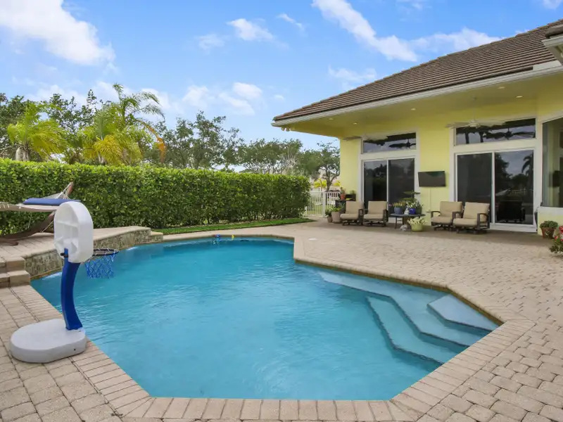 - Heated saltwater pool with Tiki Hut and outdoor kitchen