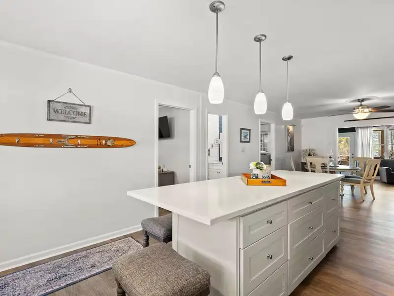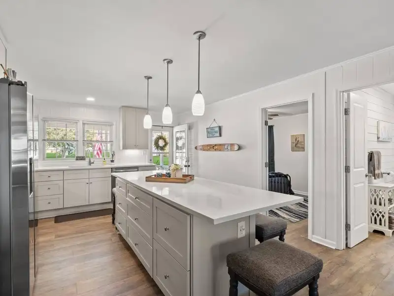 Welcome to an extraordinary opportunity to own a piece of lakeside paradise in the appealing Summerton community. This exceptional property combines modern amenities with natural beauty, offering a perfect balance of tranquility and luxury. Whether you're seeking a primary residence, a second home for those perfect getaways, or a viable investment as a short-term rental, this property meets all your desires.As you approach the house, notice the new board and batten siding that elegantly complements the light gray finish of the single-story home. The gable roof, in a contrasting dark shade, seamlessly ties the charming architectural design together. Nestled within lush greenery, this home is a tranquil escape, yet it captivates with every modern amenity.Step inside to discover a spacious layout with 4 bedrooms and 2 full baths. The home has been meticulously redone to enhance both aesthetics and functionality. It now features new windows throughout, aside from the garage, ensuring energy efficiency without compromising its classic charm.