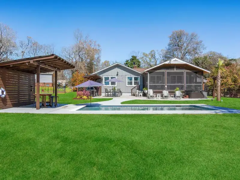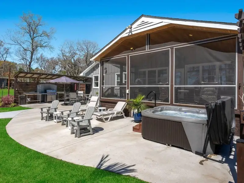 Venture outside and you'll be greeted by a breathtaking backyard that epitomizes relaxation. The new Gunite pool, equipped with a state-of-the-art heater and chiller, allows use all year round. Its lifetime structural warranty, along with a three-year equipment warranty, provides peace of mind for years of enjoyment. Adjacent to this remarkable pool, you'll find a hot tub and an outdoor kitchen--ideal for entertaining family and friends.