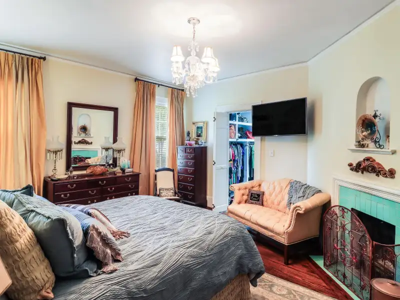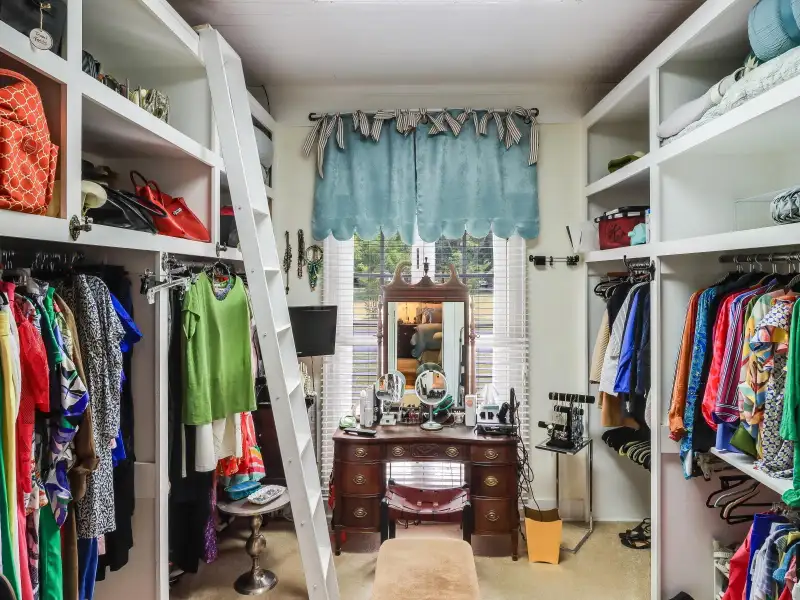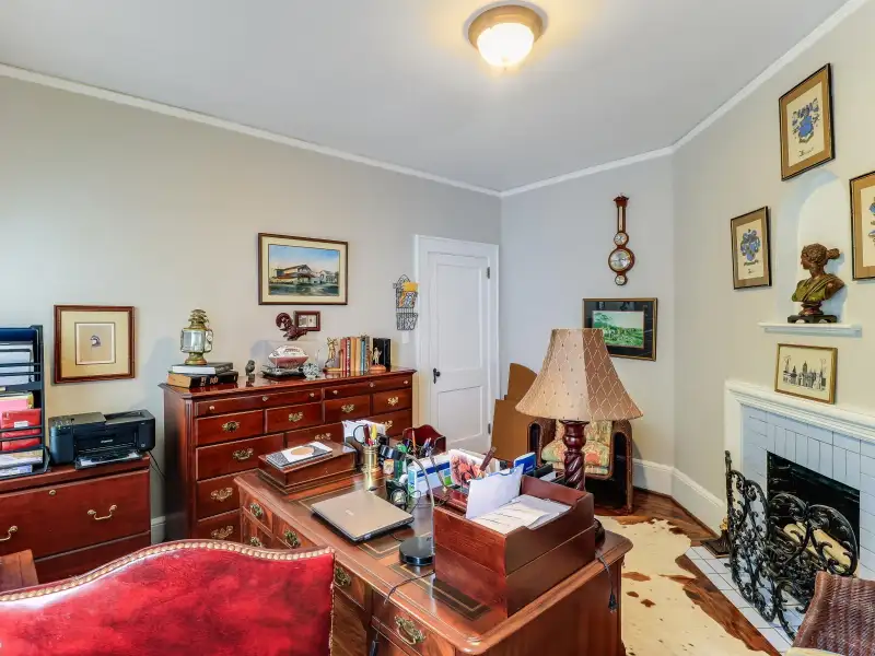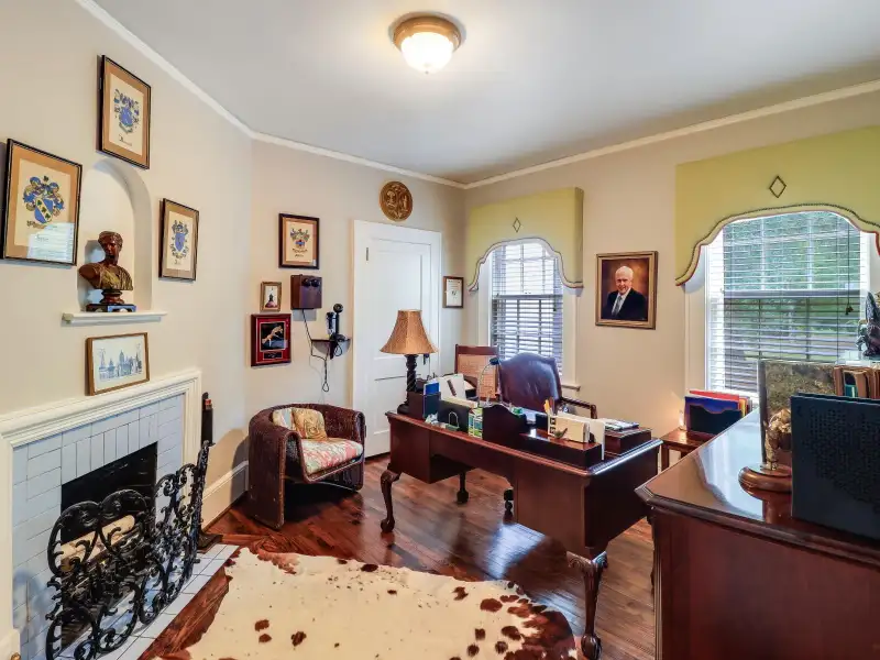 The split-bedroom layout offers privacy and practicality. The luxurious master suite is a true sanctuary with its own fireplace, an extraordinary walk-in closet (complete with a ladder for easy access), and a spa-like en-suite bathroom with a soaking tub and walk-in tiled shower. On the opposite side of the home, two generously sized bedrooms share a full bath with a tub/shower combo. A versatile fourth bedroom can serve as a den, media room, or cozy office, while the nearby laundry roomwith sink and storageadds everyday convenience.