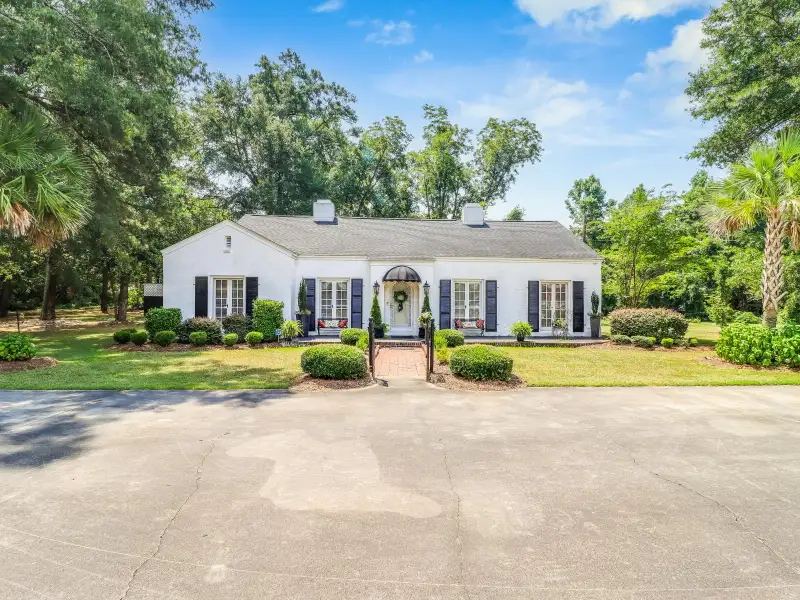 DRASTIC PRICE DROP! ACT NOW BEFORE IT'S GONE! If you're a homebuyer searching for land, privacy, and a peaceful rural setting--but still want to be just minutes from town--this charming and unique white brick ranch is the perfect fit. Built in 1938, this timeless beauty sits on 3.30 acres of meticulously maintained grounds, surrounded by mature landscaping that offers both serenity and sophistication. It's the ideal blend of countryside tranquility and modern convenience, just 15 minutes from Lake Marion and a little over an hour to Charleston or Columbia.From the moment you arrive, you're greeted by classic character and thoughtful design. The spacious great room features two cozy fireplaces, elegant curved walls, and an open flow into the dining areaperfect for entertaining or relaxed evenings at home. Original details like custom door hardware, built-ins, and unique architectural features are found throughout, adding to the home's rich personality. The kitchen is a true standout, with wood cabinetry, tile countertops, a large island, stained glass insets, a decorative tin ceiling, and a sunny eat-in area overlooking the backyard. Two sets of French doors and a nearby patio door invite you to enjoy the lovely screened porch, a peaceful retreat in any season.