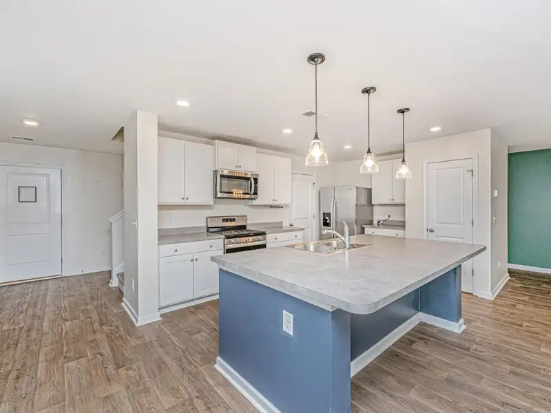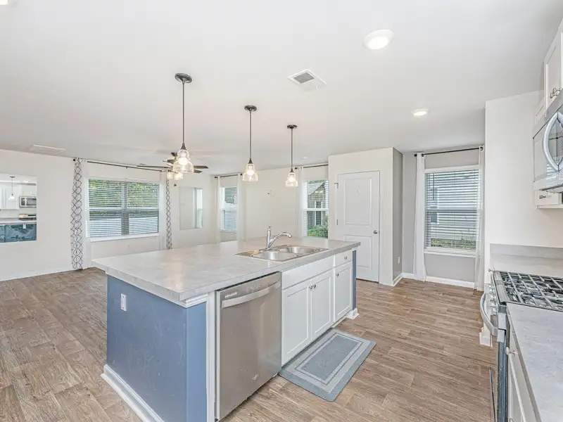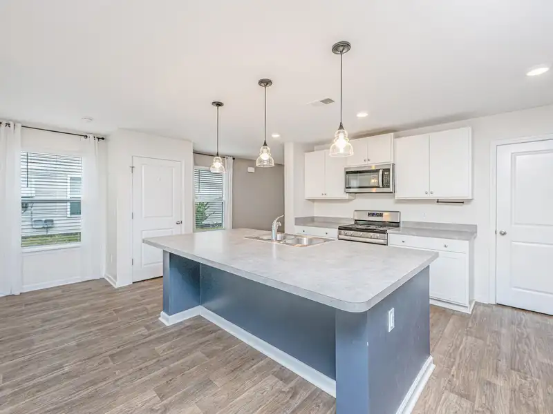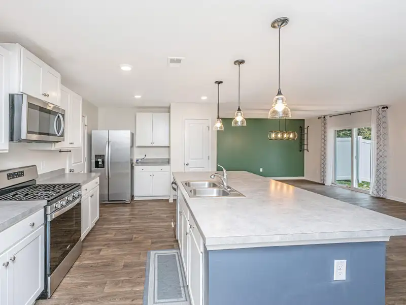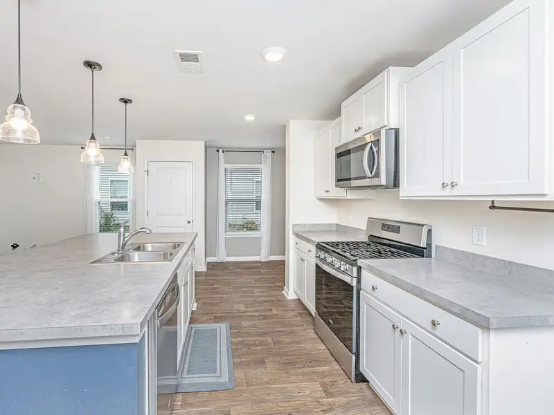 - Kitchen with oversized island and gas range