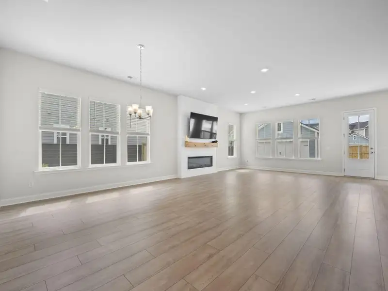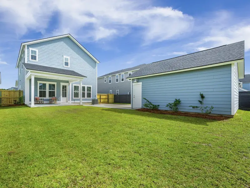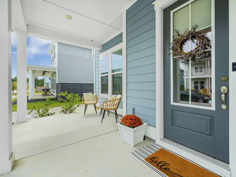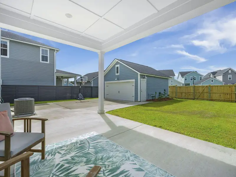 - Covered porch overlooking private backyard