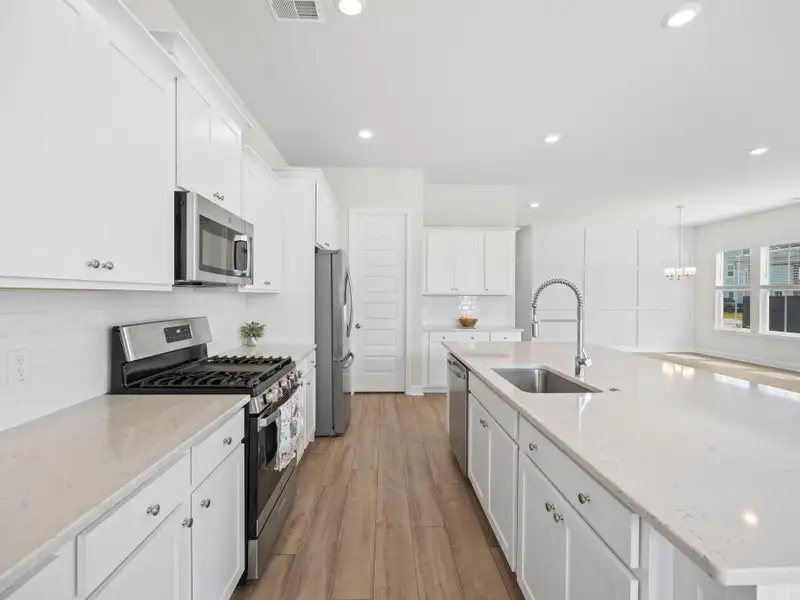 - Chef's kitchen with quartz island and pantry