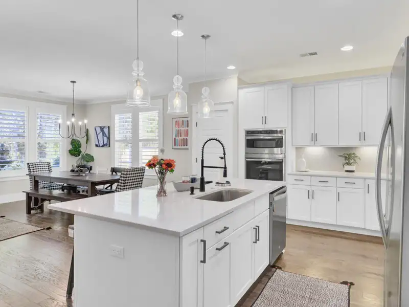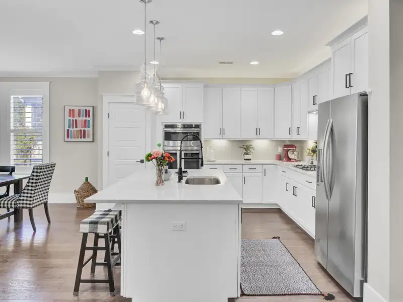 - Quartz countertops in kitchen