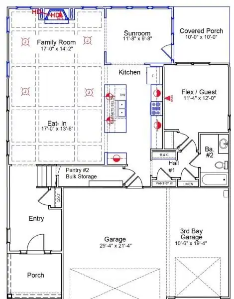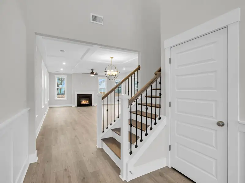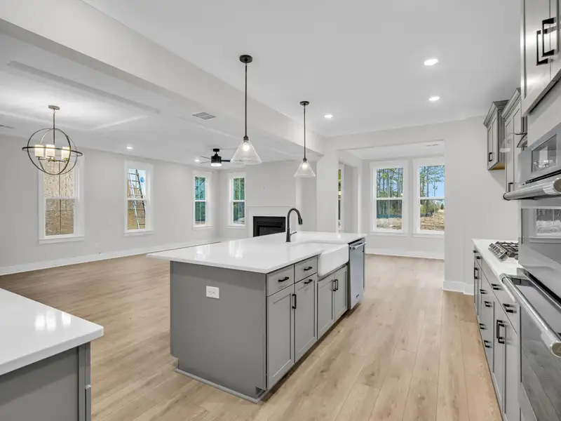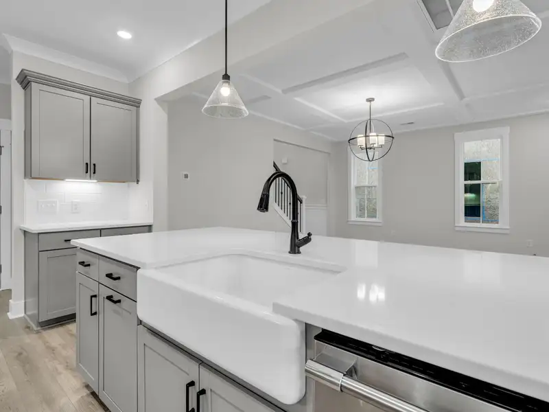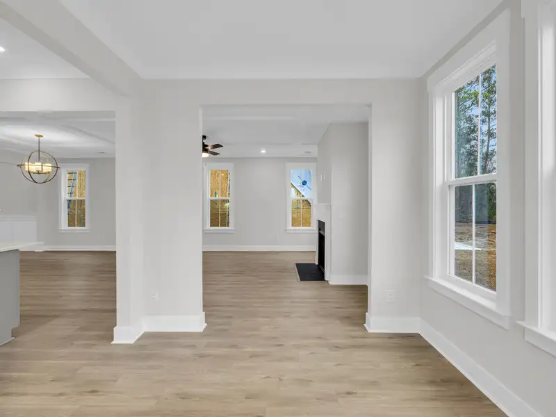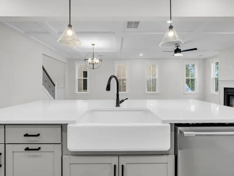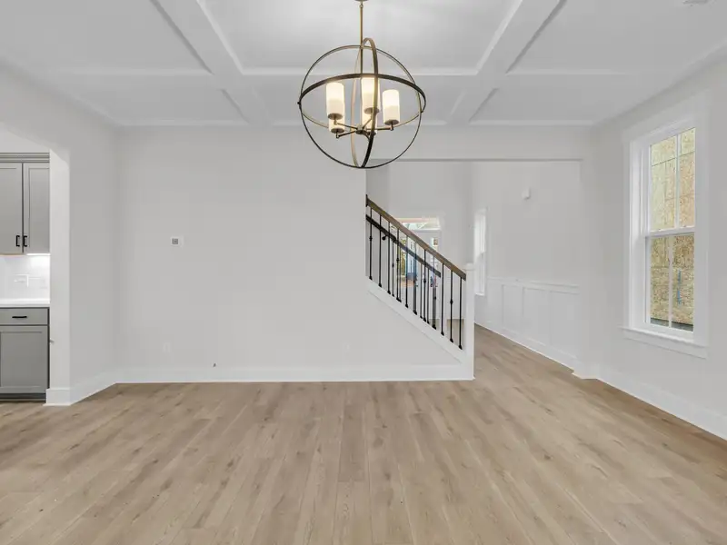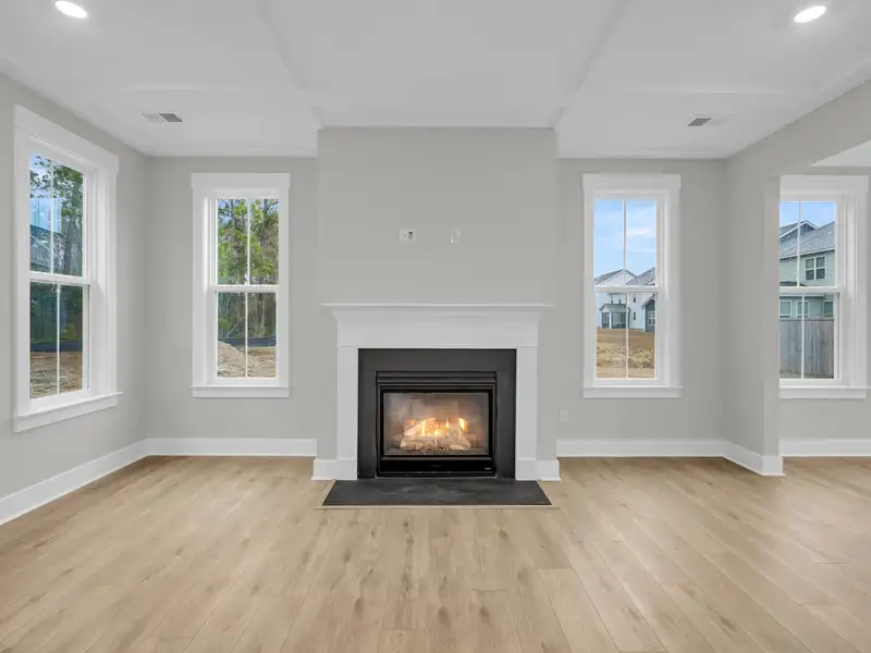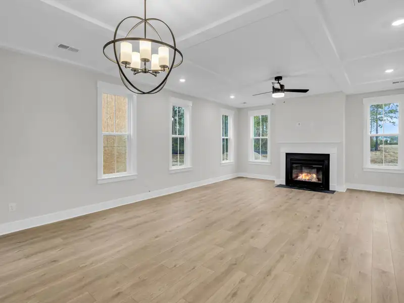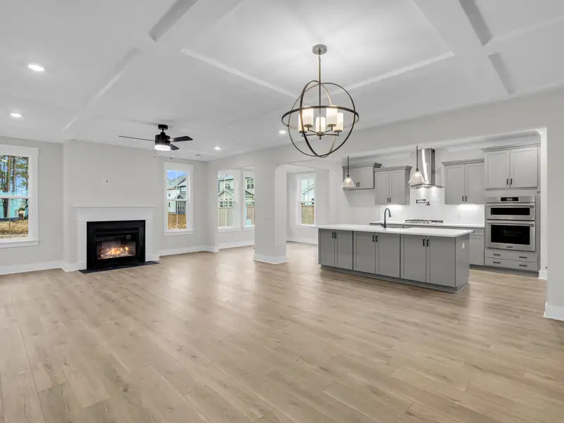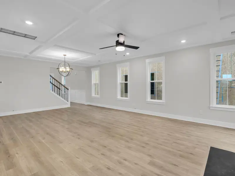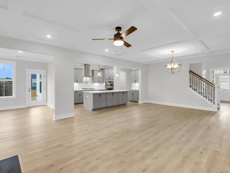 - Open family room with coffered ceilings