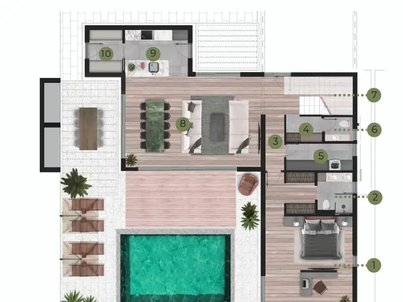 * Quality Construction & Design: Employing only premium materials, our villas are crafted to not only meet but exceed the highest standards of luxury and durability.