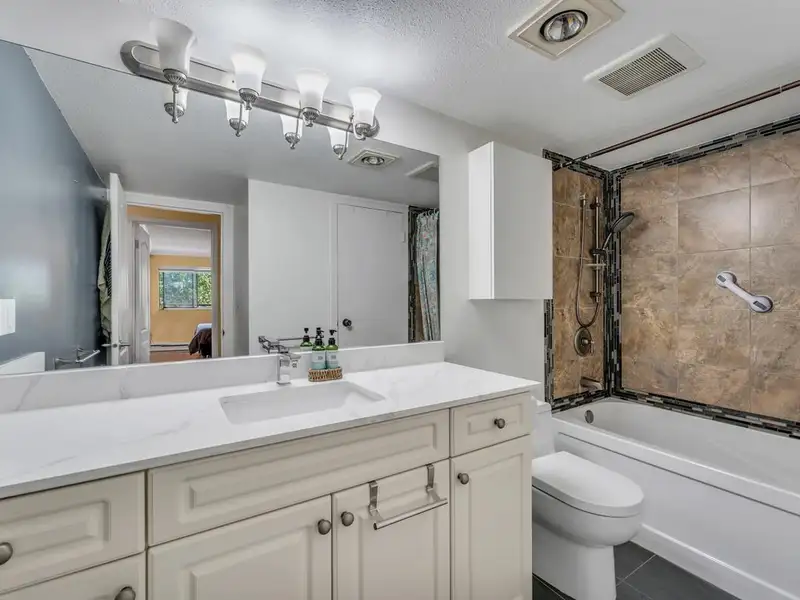 - Freshly redone bathroom tiles and countertop