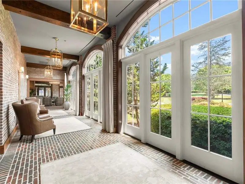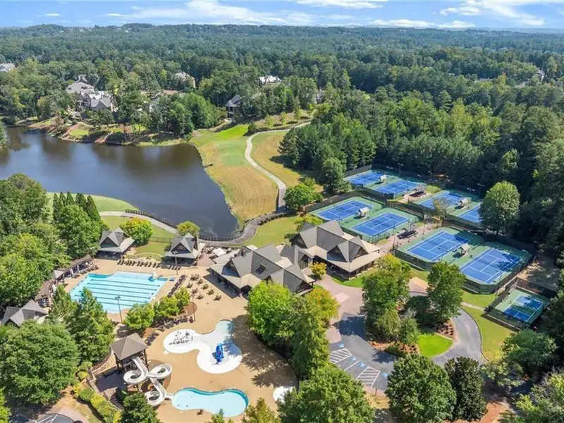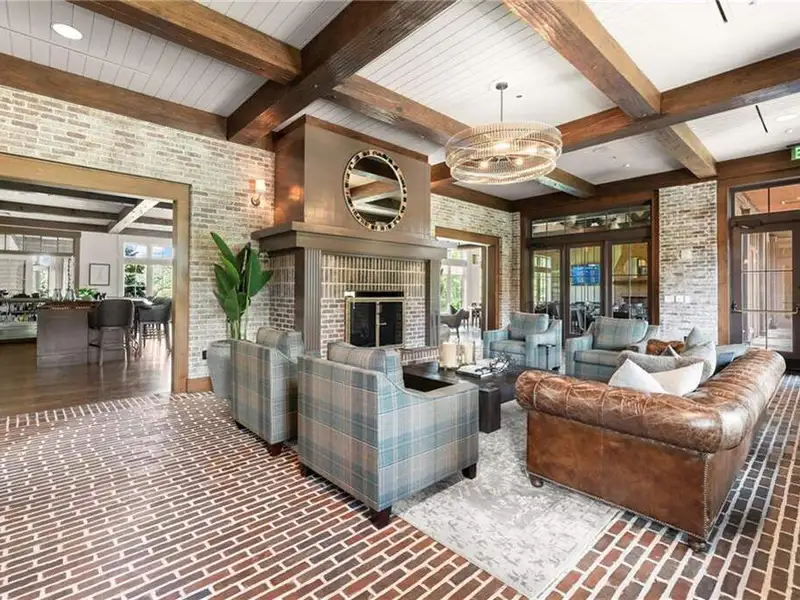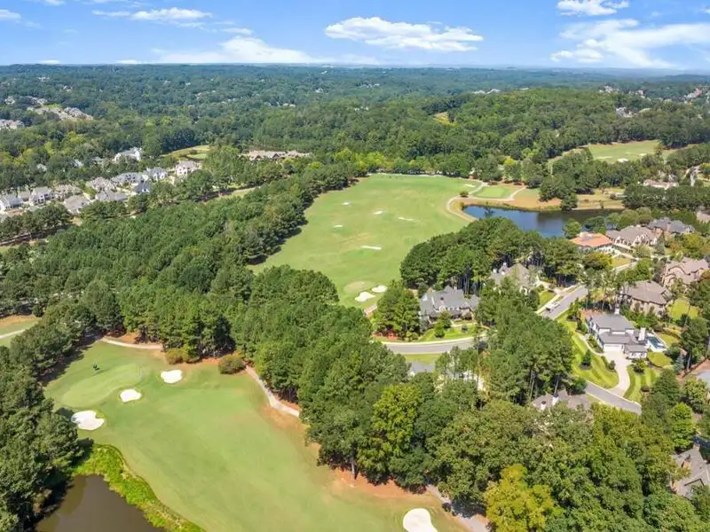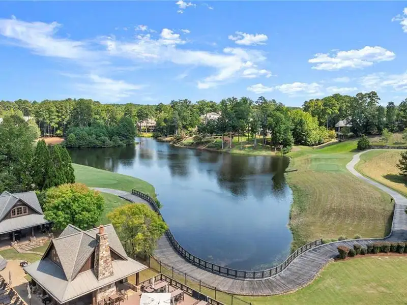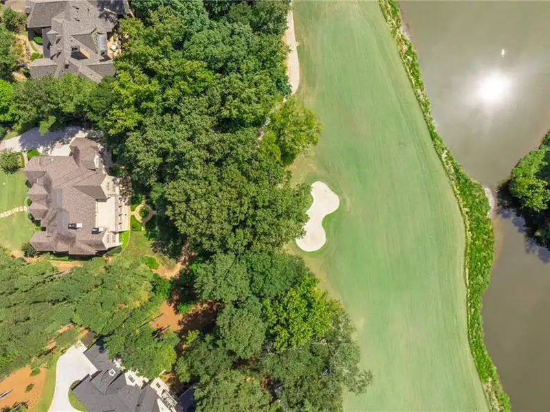 Discover an unparalleled experience in The River Club, where luxurious living meets a refined community, creating an experience unmatched anywhere else. Embrace a lifestyle of sophistication and leisure, where every day feels like a getaway in an exceptional neighborhood. This magnificent estate offers designer elegance with breathtaking views of the 13th hole of the golf course and lake, ensuring total privacy with the serene Chattahoochee River just beyond. The backyard is beautifully enhanced by an elegant English Garden-style landscape, creating a tranquil outdoor retreat. Upon entering, you are greeted by a welcoming foyer that flows seamlessly into the stylishly appointed martini room, which exudes a moody and sophisticated ambiance while also offering the versatility to serve as a formal dining room. The attention to detail is immediately apparent, with custom metal handrails adorning the staircase leading to the second floor. The expansive fireside great room, adorned with rustic wood beams, opens to a meticulously designed kitchen and breakfast room, perfect for both entertaining and everyday living. The kitchen extends to include a charming coffee bar area, complemented by a gorgeous walk-in butler's pantry, enhancing functionality and style. Double french doors lead to an outdoor retreat featuring a cozy fireplace, creating a seamless indoor-outdoor flow that enhances the overall ambiance. The luxurious primary suite is conveniently located on the main level and features distinctive herringbone-pattern hardwood floors that highlight the elegance of the space. The en-suite bath includes a separate soaking tub, an oversized zero-entry shower, dual vanities, a ladies' makeup vanity, and spacious his and her closets. A light-filled sitting room completes this exceptional suite. Ascending to the second floor, you will find three well-appointed secondary bedrooms. Two of these bedrooms are mirror images of each other, each boasting spa-like baths, sitting areas, and expansive closet space. Both suites enjoy access to private rooftop terraces with picturesque views of the lake and golf course. Additionally, convenient elevator service provides access to all three floors. The lower level is designed for entertaining and includes a custom bar, media room, state-of-the-art home theater, home gym, a massage room, and an oversized en suite guest bathroom. This home features an array of unique finishes that are truly one-of-a-kind, including reclaimed beams, exquisite ceiling treatments, distinctive door hardware, and custom lighting fixtures. Welcome home to The River Club where residents enjoy a wealth of amenities, including a championship golf course, a state-of-the-art fitness center, and a stunning clubhouse with elegant dining and event spaces. The resort-style swimming pool features Olympic lanes, a thrilling waterslide, and comfortable cabanas, while tennis and pickleball courts offer additional recreational opportunities. With picturesque walking trails, serene lakes, and beautifully landscaped parks, residents can embrace an active lifestyle and a strong sense of community.