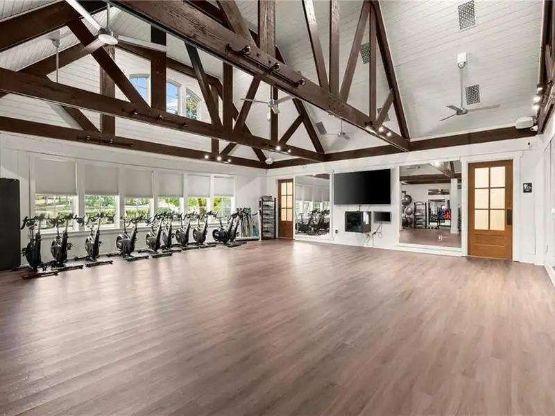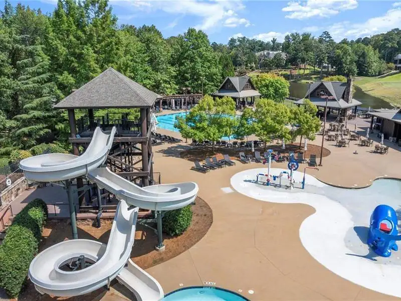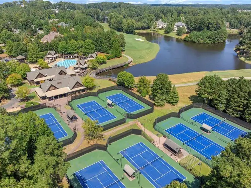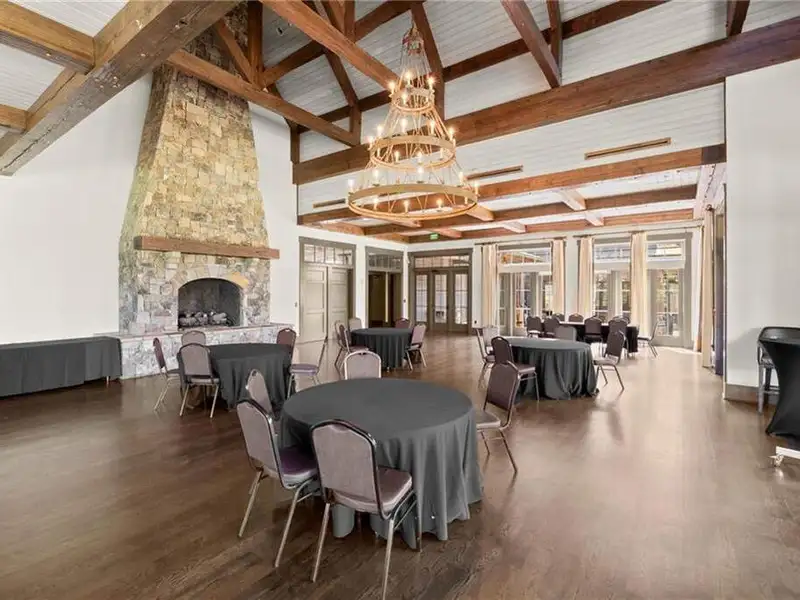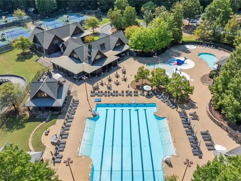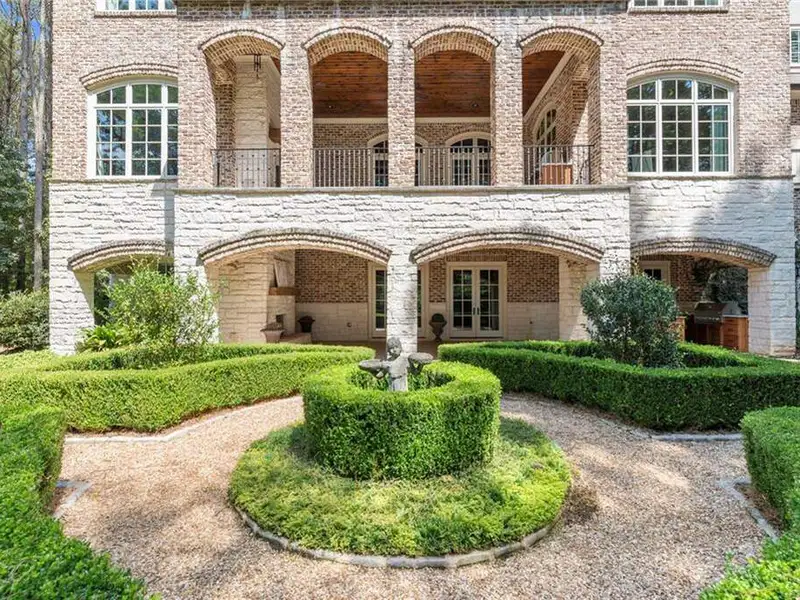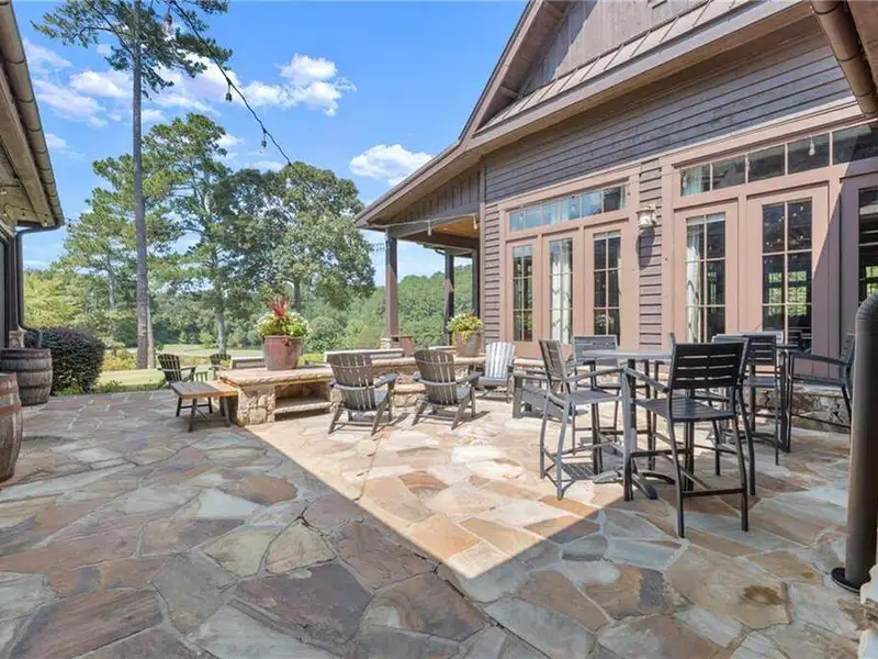 Discover an unparalleled experience in The River Club, where luxurious living meets a refined community, creating an experience unmatched anywhere else. Embrace a lifestyle of sophistication and leisure, where every day feels like a getaway in an exceptional neighborhood. This magnificent estate offers designer elegance with breathtaking views of the 13th hole of the golf course and lake, ensuring total privacy with the serene Chattahoochee River just beyond. The backyard is beautifully enhanced by an elegant English Garden-style landscape, creating a tranquil outdoor retreat. Upon entering, you are greeted by a welcoming foyer that flows seamlessly into the stylishly appointed martini room, which exudes a moody and sophisticated ambiance while also offering the versatility to serve as a formal dining room. The attention to detail is immediately apparent, with custom metal handrails adorning the staircase leading to the second floor. The expansive fireside great room, adorned with rustic wood beams, opens to a meticulously designed kitchen and breakfast room, perfect for both entertaining and everyday living. The kitchen extends to include a charming coffee bar area, complemented by a gorgeous walk-in butler's pantry, enhancing functionality and style. Double french doors lead to an outdoor retreat featuring a cozy fireplace, creating a seamless indoor-outdoor flow that enhances the overall ambiance. The luxurious primary suite is conveniently located on the main level and features distinctive herringbone-pattern hardwood floors that highlight the elegance of the space. The en-suite bath includes a separate soaking tub, an oversized zero-entry shower, dual vanities, a ladies' makeup vanity, and spacious his and her closets. A light-filled sitting room completes this exceptional suite. Ascending to the second floor, you will find three well-appointed secondary bedrooms. Two of these bedrooms are mirror images of each other, each boasting spa-like baths, sitting areas, and expansive closet space. Both suites enjoy access to private rooftop terraces with picturesque views of the lake and golf course. Additionally, convenient elevator service provides access to all three floors. The lower level is designed for entertaining and includes a custom bar, media room, state-of-the-art home theater, home gym, a massage room, and an oversized en suite guest bathroom. This home features an array of unique finishes that are truly one-of-a-kind, including reclaimed beams, exquisite ceiling treatments, distinctive door hardware, and custom lighting fixtures. Welcome home to The River Club where residents enjoy a wealth of amenities, including a championship golf course, a state-of-the-art fitness center, and a stunning clubhouse with elegant dining and event spaces. The resort-style swimming pool features Olympic lanes, a thrilling waterslide, and comfortable cabanas, while tennis and pickleball courts offer additional recreational opportunities. With picturesque walking trails, serene lakes, and beautifully landscaped parks, residents can embrace an active lifestyle and a strong sense of community.