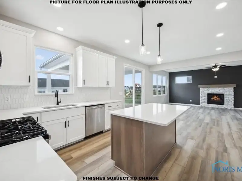 Brand New Buckeye Florence Floor Plan! This stunning home is filled with natural light from its abundance of windows on nearly every wall. The kitchen shines with a luxurious tile backsplash, an accented island, quartz countertops and modern finishes. The living room features a striking stone fireplace framed by an accent painted wall, creating a sleek and contemporary vibe. Relax on the covered patio, perfect for outdoor gatherings. The owners suite boasts a grand bathroom and an expansive walk-in closet, offering the ultimate in comfort and luxury. Pictures for illustrational purposes only.