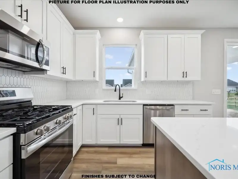• Kitchen with quartz countertops and tile backsplash