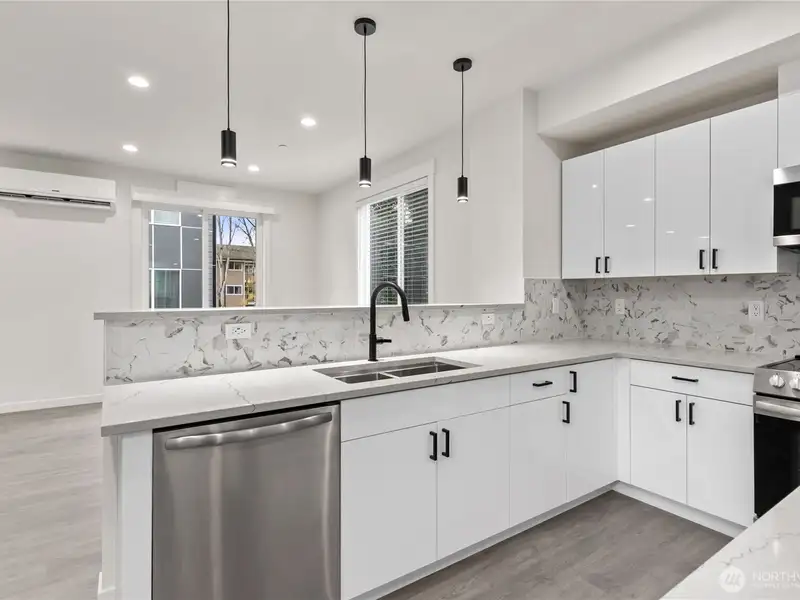 - Stylish kitchen with quartz countertops