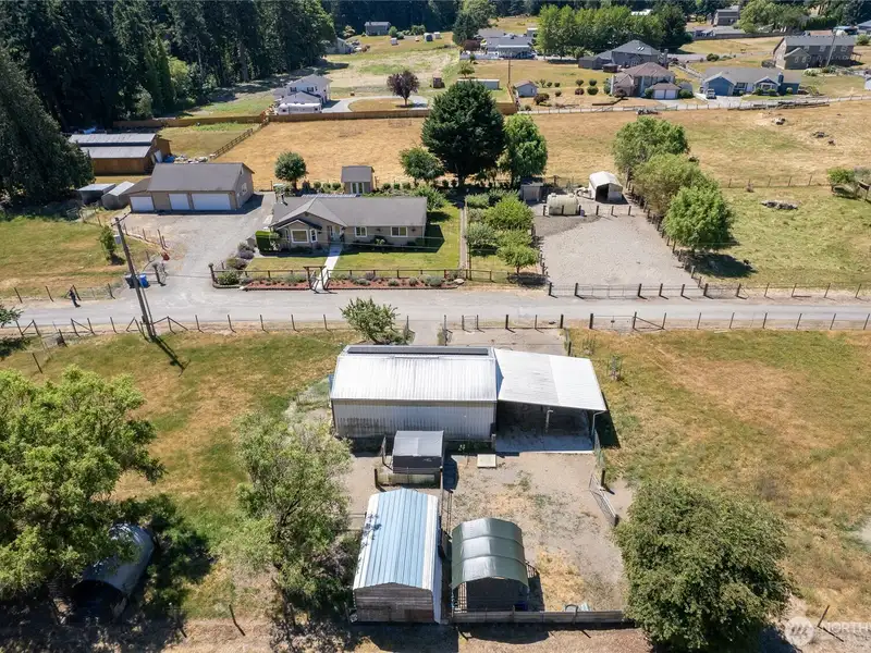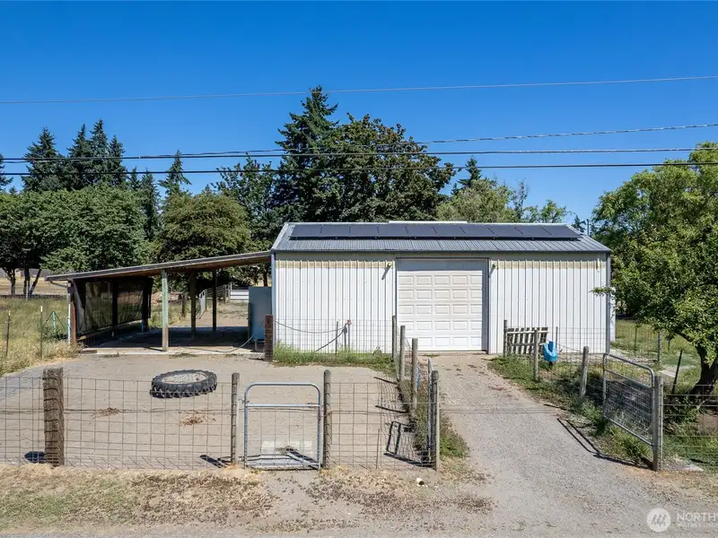 Two parcels sold together! Tucked back on peaceful acreage, this move-in ready and lovingly maintained property is packed with impressive features for creativity, comfort, and self-sufficiency. A beautifully remodeled kitchen pair with collection of versatile outbuildings—including detached garage with shop, creative cottage, barn, chicken coop, & greenhouse. Solar panels, high-capacity power, and EV charger made ideal for hands-on projects and modern living- too many features to list! Fully fenced for livestock & equestrian use. English-style landscaping, fruit trees, raised beds, and culinary herb garden complete the setting. End your day by the fire pit, roasting s’mores. A true live-work-play property with power in all the right places.