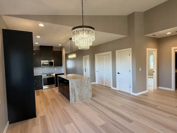 - Large kitchen island with eating bar