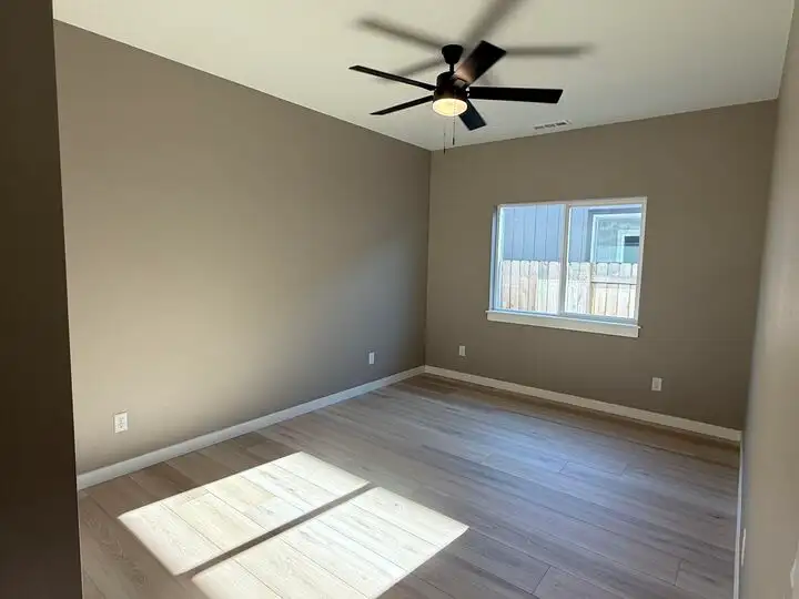 - Large rear patio and fenced backyard