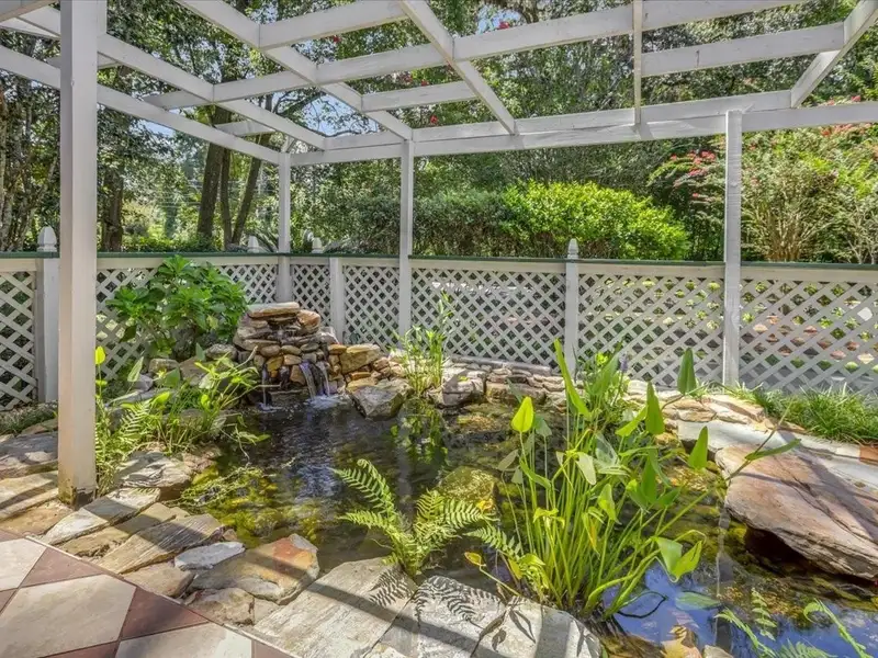 - Welcoming courtyard with pond