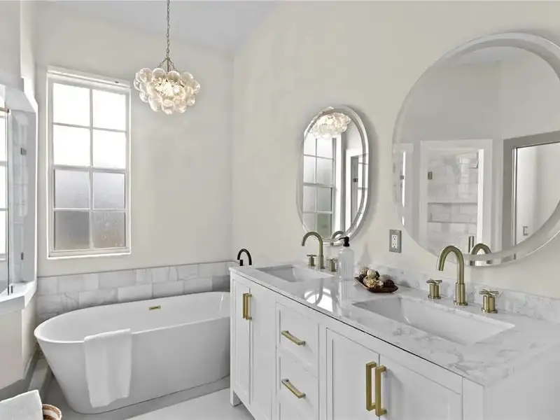 - Spa-style primary bathroom with soaking tub