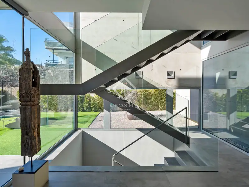 The house has three floors connected by a designer interior staircase. Its spaces were designed with minimal hallways or corridors, creating very open spaces with large windows that provide natural light, views, and the feeling of being connected to the garden exterior . Furthermore, the upper floor offers views of the blue Mediterranean horizon.