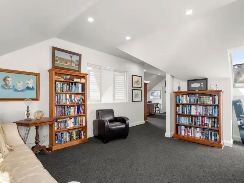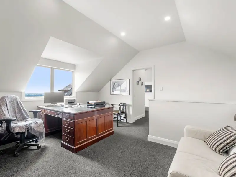 Upstairs The master suite commands spectacular views and includes his-and-hers walk-in wardrobes and a newly refurbished, fully tiled ensuite. A study/library and a private lounge complete this level, providing a peaceful retreat.