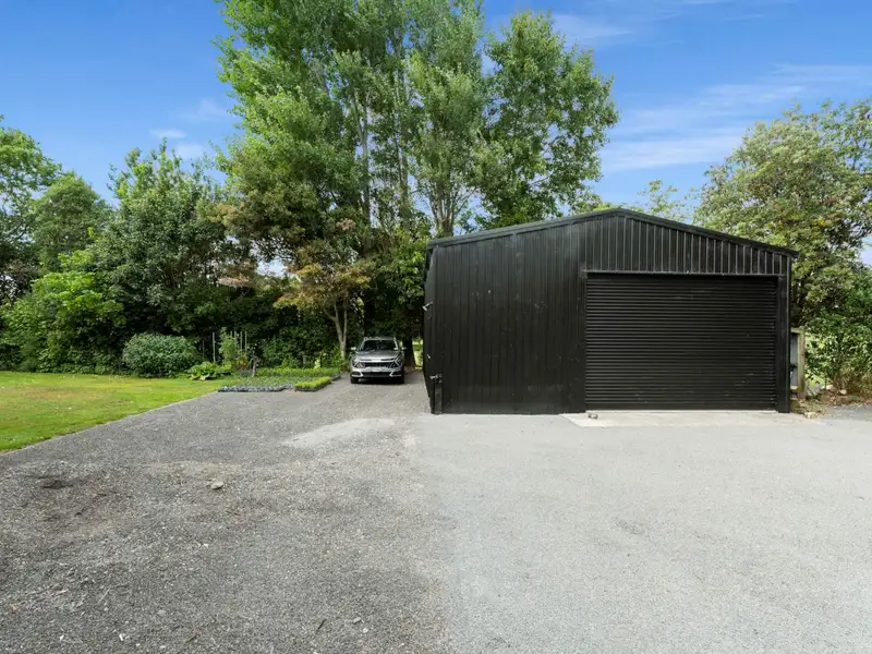 The Grounds The 7,143 sqm landscaped section features an 80 sqm high-stud workshop/shed — perfect for the ultimate “man cave,” extra vehicles, or hobbies. There’s abundant outdoor parking, a freshly sealed driveway, and dedicated space for a boat, caravan, or campervan, plus ample visitor parking.