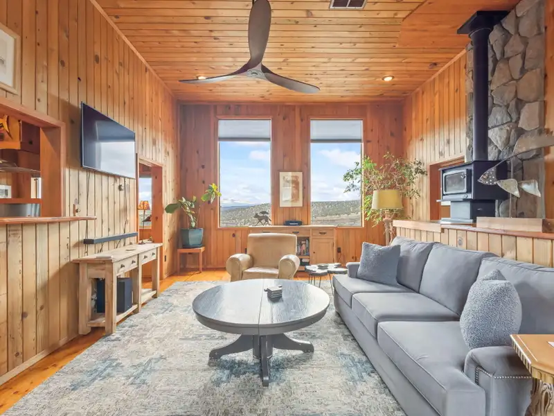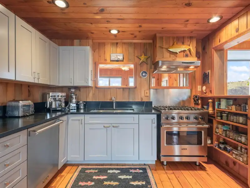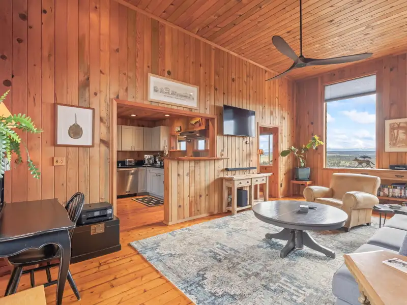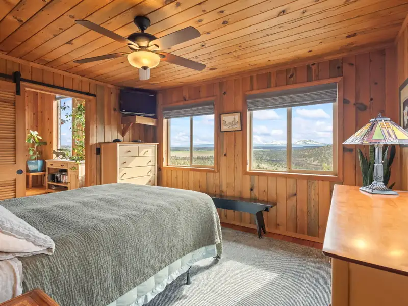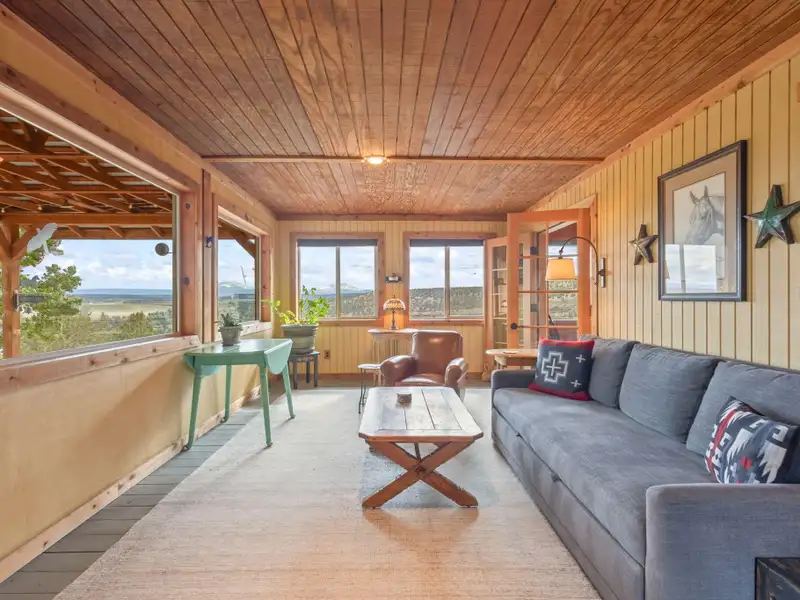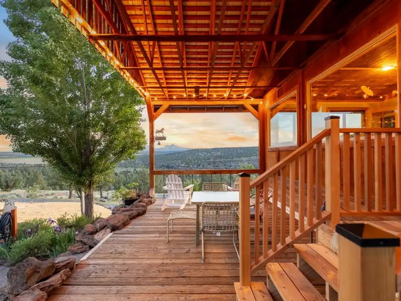 Private Hilltop Retreat with Cascade Views - Custom Home + Cabin on 5+ Acres With sweeping views of the Cascade Mountains and overlooking the Deschutes River Gorge, this custom home offers the perfect blend of rustic charm, modern comfort, and a unique homestead opportunity. The home features wood siding, wide plank wood floors, and beautiful blue and buggy pine interior finishes. The spacious great room showcases a dramatic wall of windows that frame the stunning mountain vistas, complemented by a cozy wood stove. A separate family/sunroom provides additional space for relaxing or entertaining guests. The country-style kitchen is equipped with stainless steel Viking appliances. Enjoy year-round beauty from the covered deck. Additional features include a 2-car garage with a 10' door, a separate shop area, and a chicken coop. A detached cabin on the property offers even more flexibility. This retreat is close to public lands and river access, offering endless outdoor opportunities.