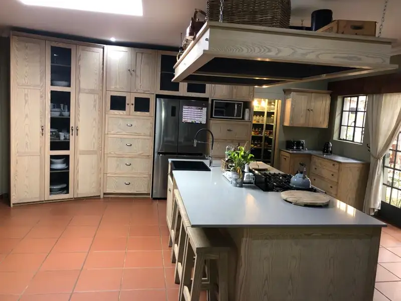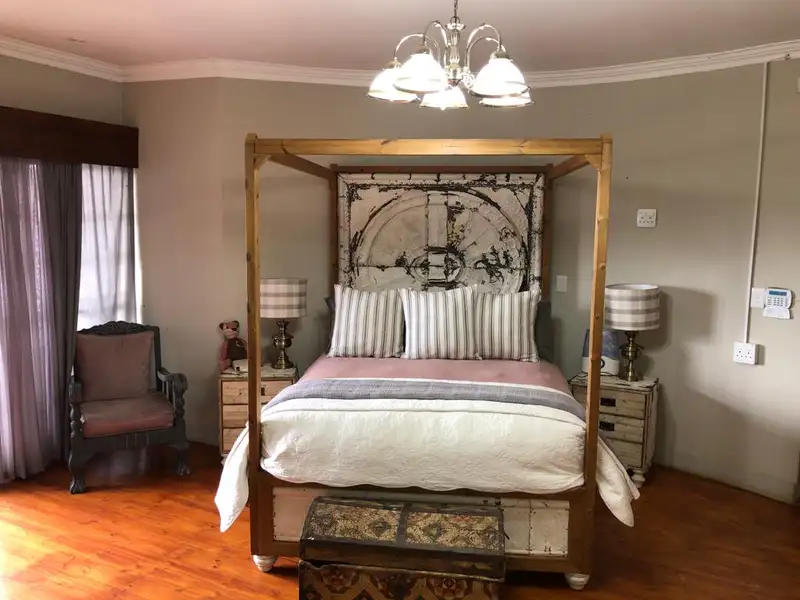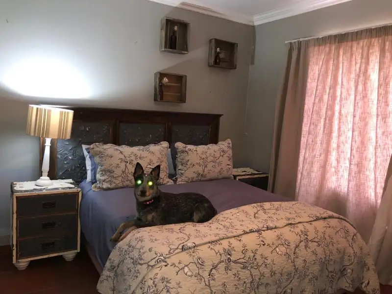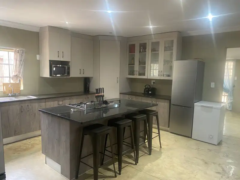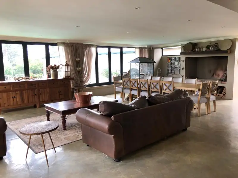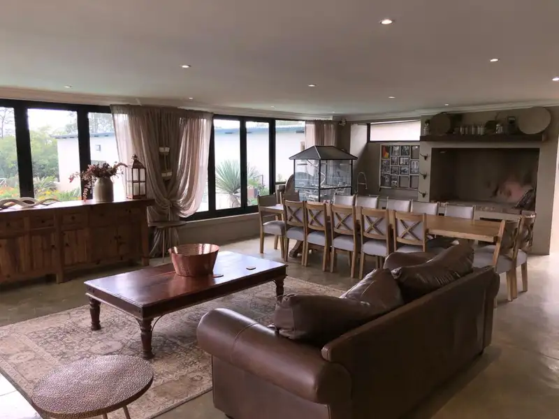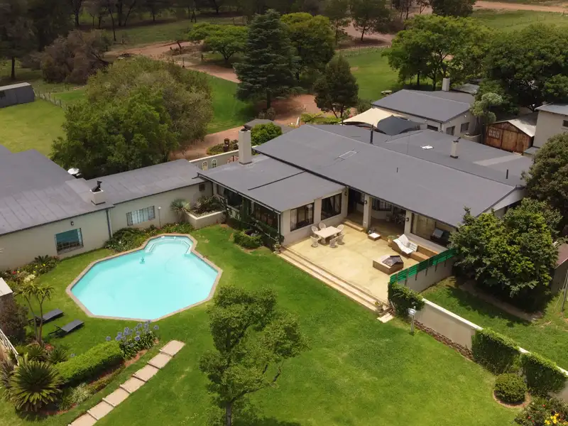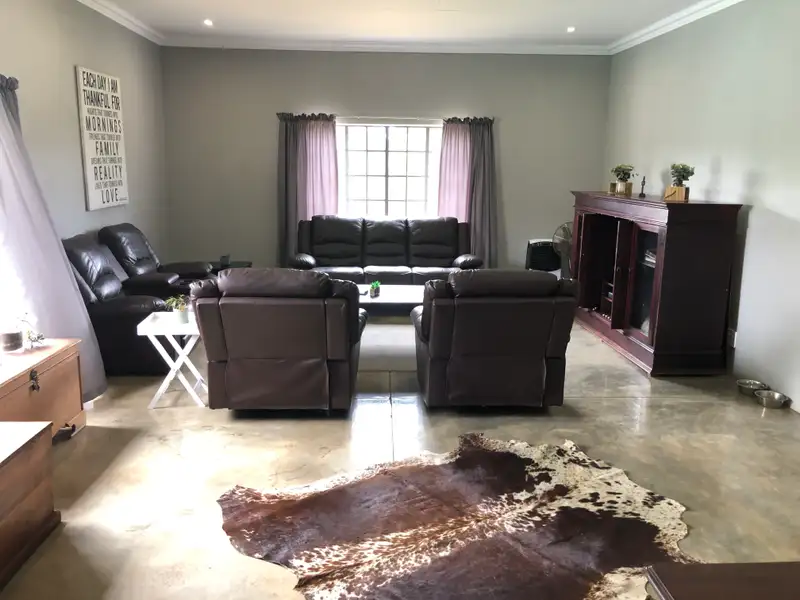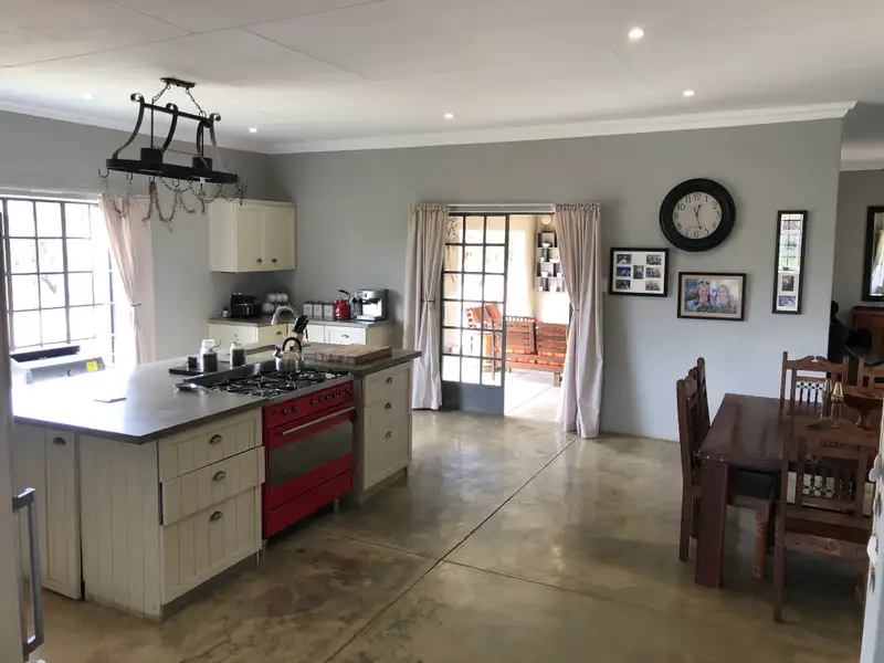 The main house is a true gem, with four spacious en-suite bedrooms and a brand new Smeg gas stove in the newly installed kitchen. The kitchen also features a scullery and pantry, making meal preparation a breeze. With two lounges and an entertainment room overlooking the sparkling swimming pool and fire pit, you can relax in style while enjoying the breathtaking views of grazing Nyala, Blesbok, Springbok, and Ostridge beyond the pool.