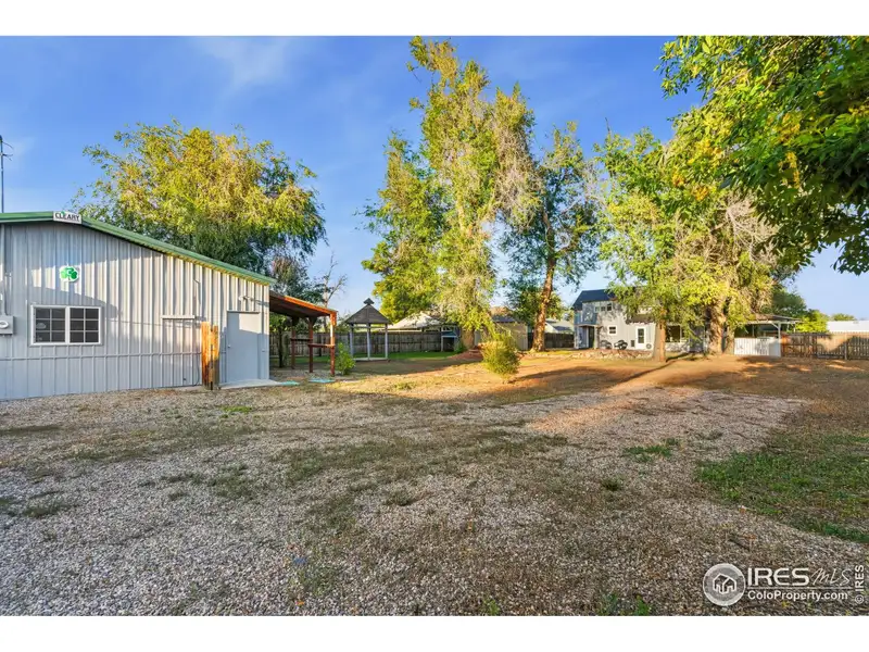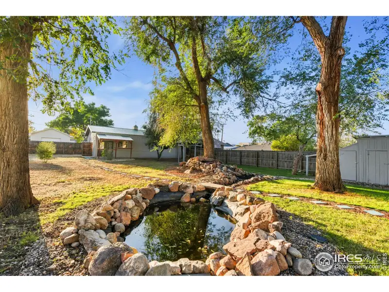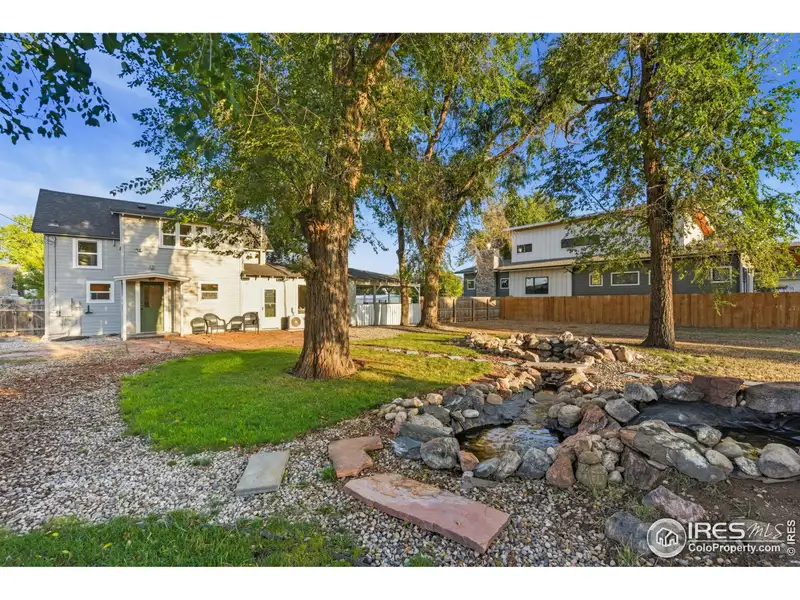 - Backyard with fountain, gazebo, mature trees