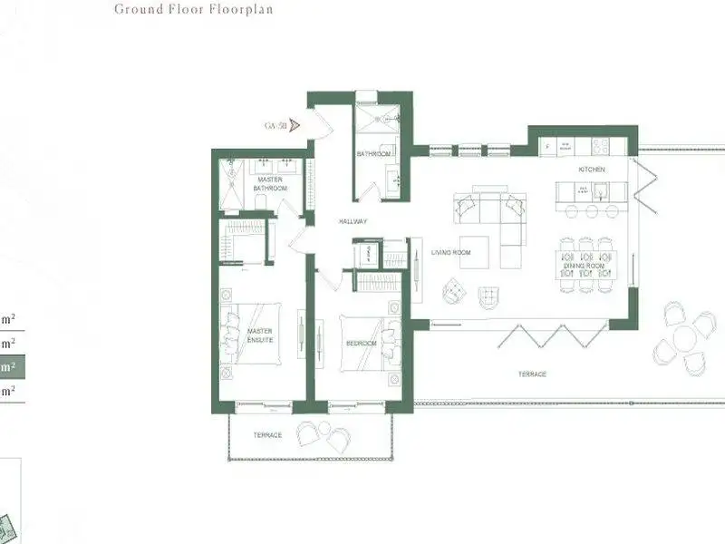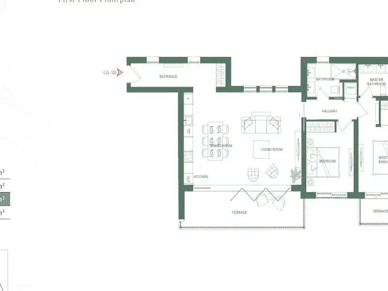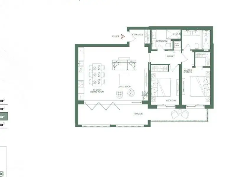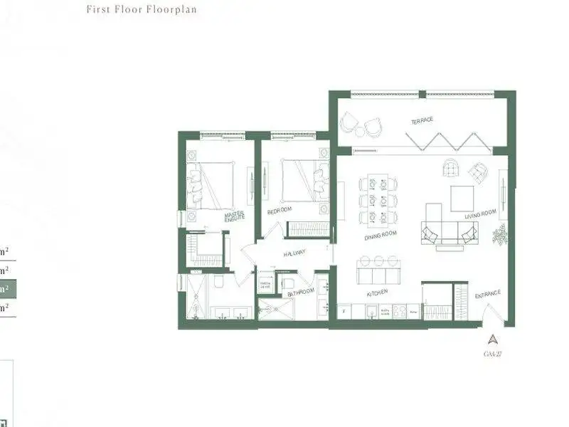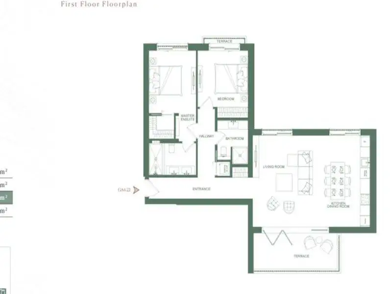 'Botanika' spacious 2-bedroom apartment overlooking golf holes 1 and 2 and the Adriatic Sea. They consist of open-plan living and dining areas, two bedrooms with a bathroom, and a beautiful terrace with a magnificent sea view. Owners have access to the neighborhood pool and Guvno - seating area. Inside is a bespoke custom-made kitchen with Miele appliances (or a similar international brand), porcelain tiles in stone, and a terrazzo effect. Upgrades include bespoke wood veneer wardrobes, high-quality parquet flooring, additional Miele appliances, branded fittings, sanitary ware, and a towel heater. There are Neighborhood parking lots.