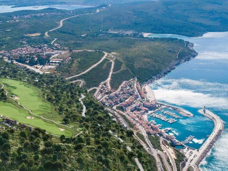 Lustica Bay is in the sweeping Lustica Peninsula, between the stunning Bay of Kotor entrance and the Adriatic Sea. It is a gateway to the treasures that Montenegro has to offer. There are three international airports nearby: Tivat (10km), only a 15-minute drive away; Podgorica, Montenegro's capital (90km); and Cilipi, a short drive from Croatia's coastal town of Dubrovnik (46km). All three airports operate scheduled and charter flights with additional facilities for private aircraft. With direct European connections, Lustica Bay is within a three-hour flight from most European cities.