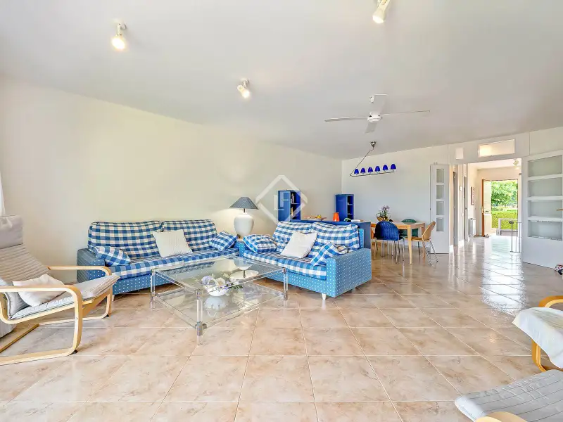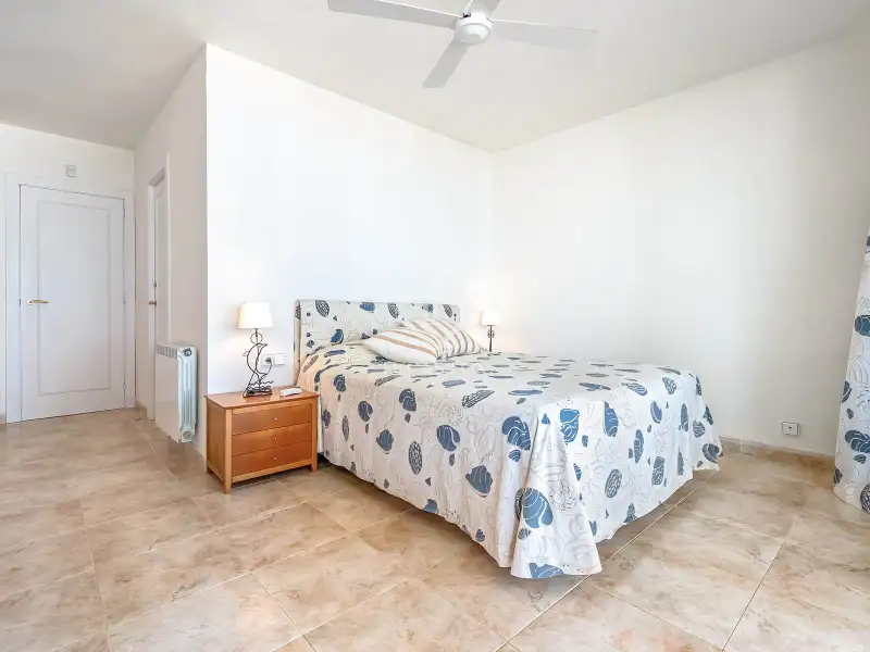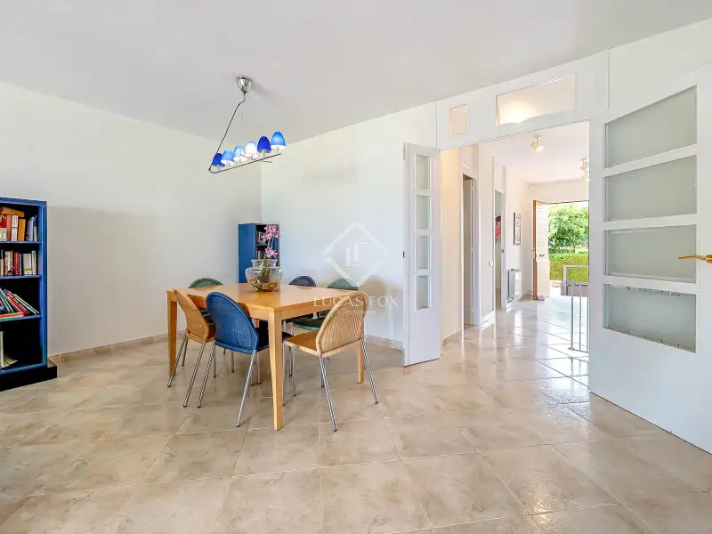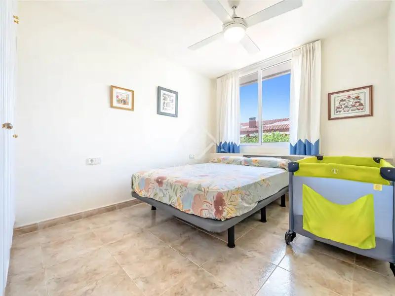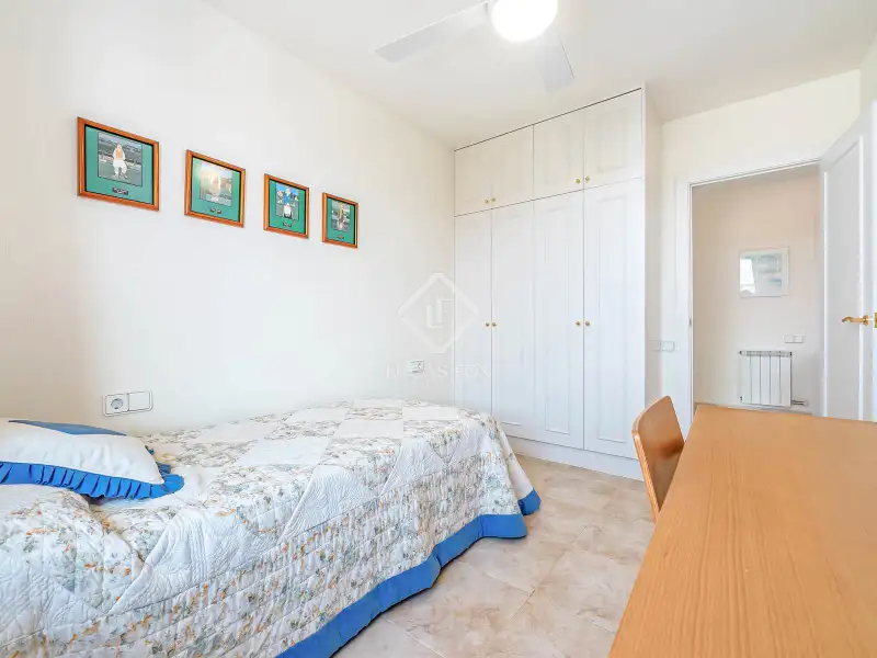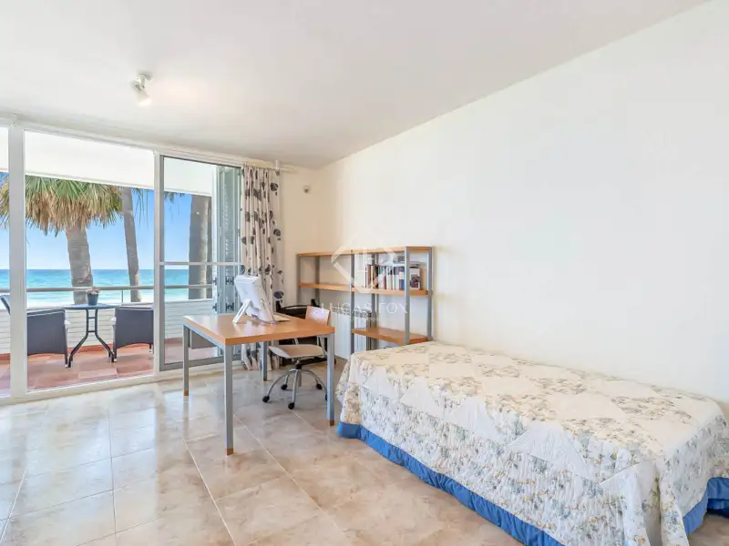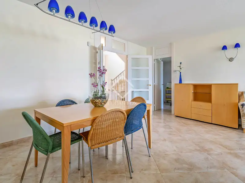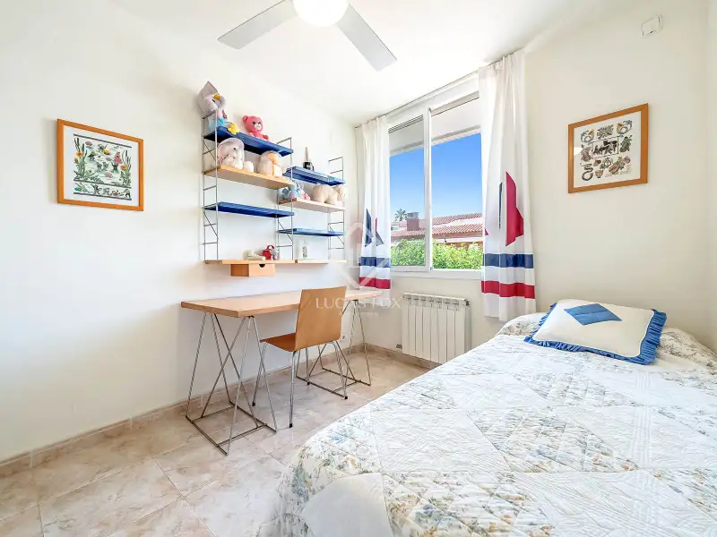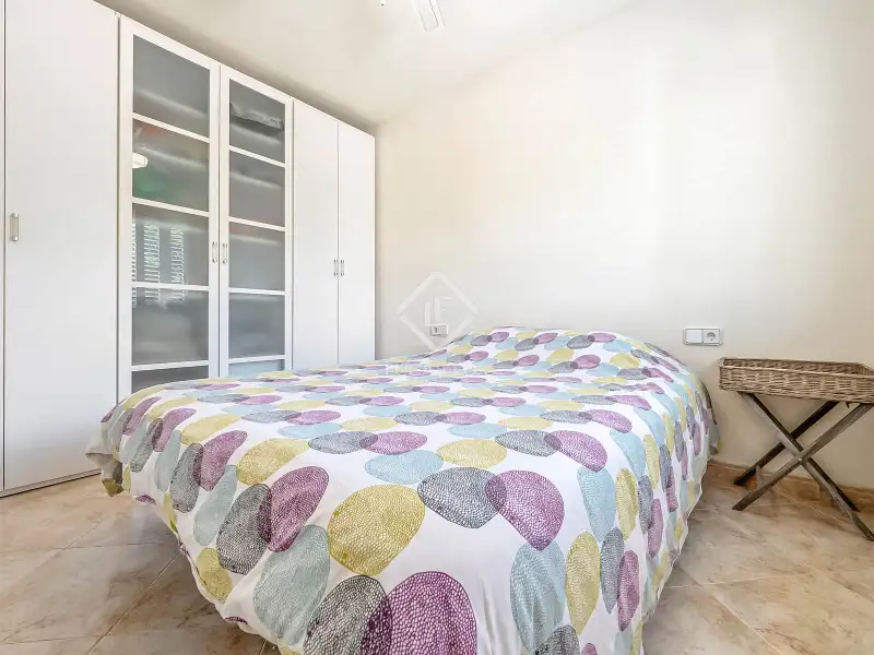 On the ground floor, we find a hall that leads to a double bedroom with a built-in wardrobe and a full bathroom . Next, there is another double bedroom , currently used as a utility room and pantry annex to the kitchen. Further on, the staircase connects the three floors and the living-dining room. The latter is spacious, bright, and overlooks the garden and the Mediterranean Sea. However, sea views can be enjoyed from any corner. It also has access to the exterior garden , with private direct access to the beach. The large, fully equipped kitchen also has a dining area with seating for several guests and also has a door directly to the garden.
