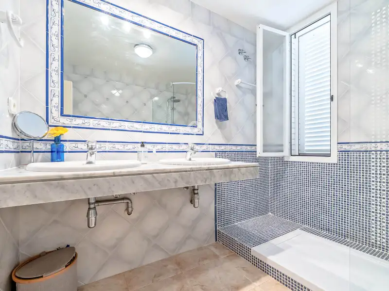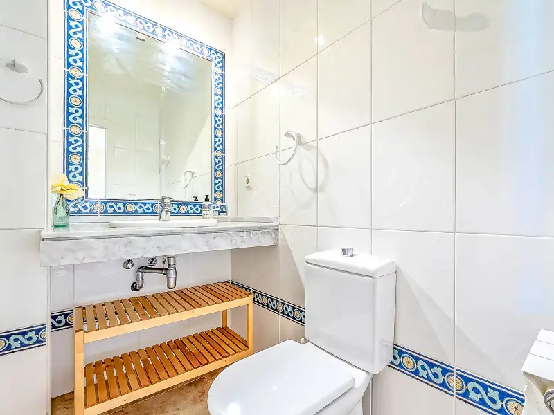 From the hall, a staircase with natural light leads to the upper floor , where we find three double bedrooms and two bathrooms. The master bedroom has a sitting area and bathroom, as well as a generous wraparound terrace with panoramic views of the sea and its natural surroundings, perfect for enjoying unique sunsets.