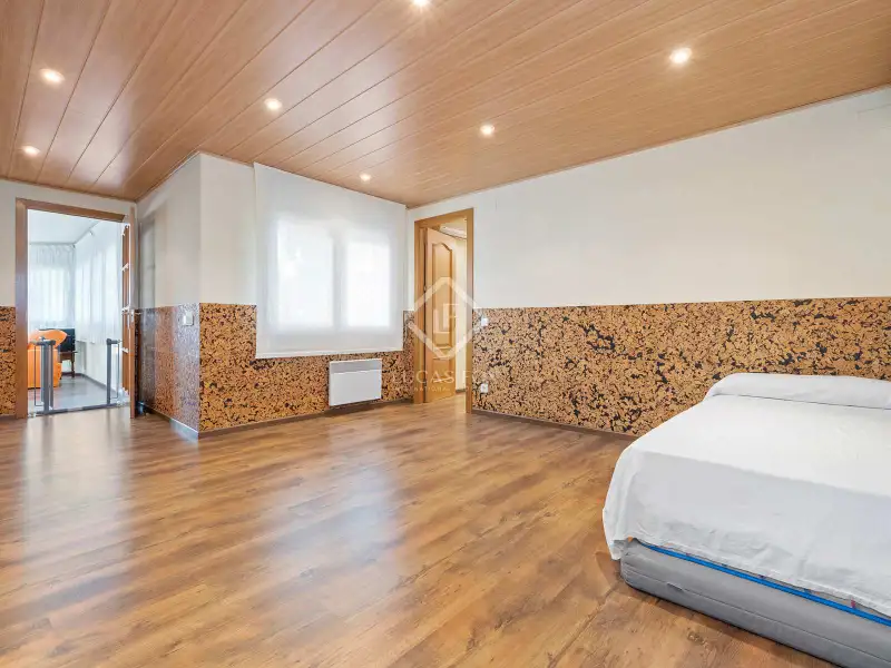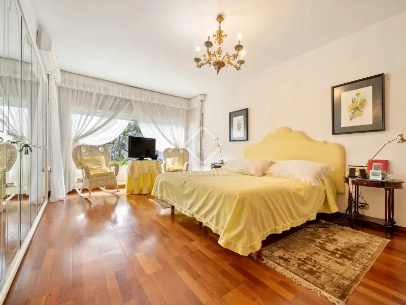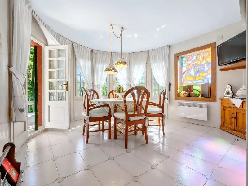 In the garden, you can find various spaces created and designed with various uses in mind. For family gatherings, a shed is offered next to the pool, equipped with a barbecue, seating area, bathroom, changing room and summer dining room . For physical exercise, a tennis court or swimming pool is offered. For the enjoyment of the little ones in the house, an area with swings. In addition, other different environments are arranged throughout the extensive garden.