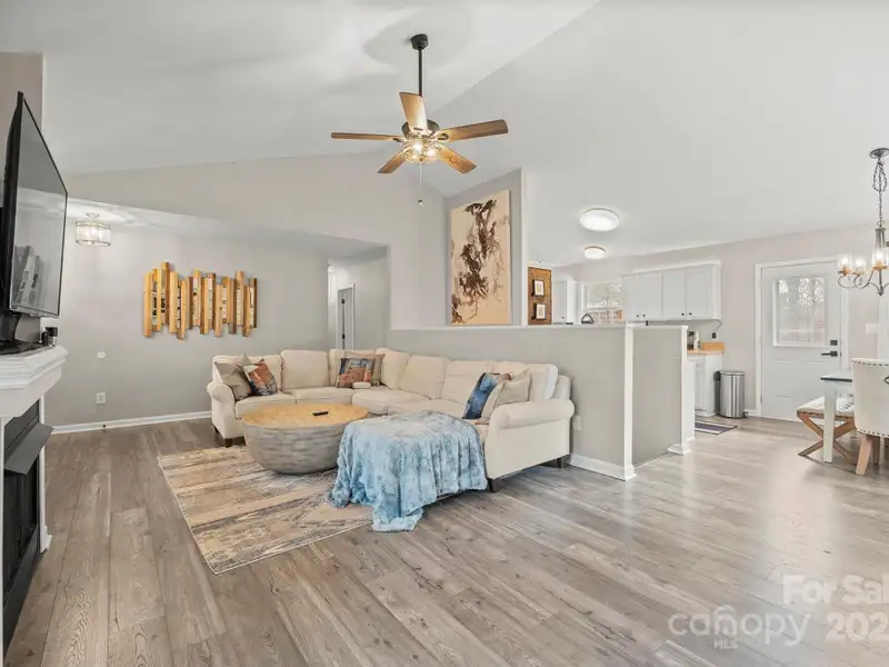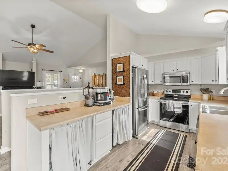 - Open kitchen with vaulted ceilings