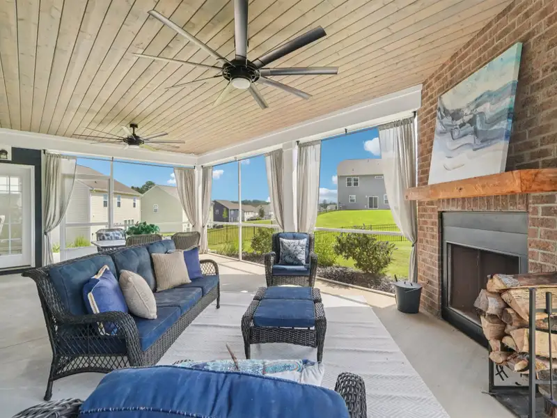 - Wood-burning fireplace on porch