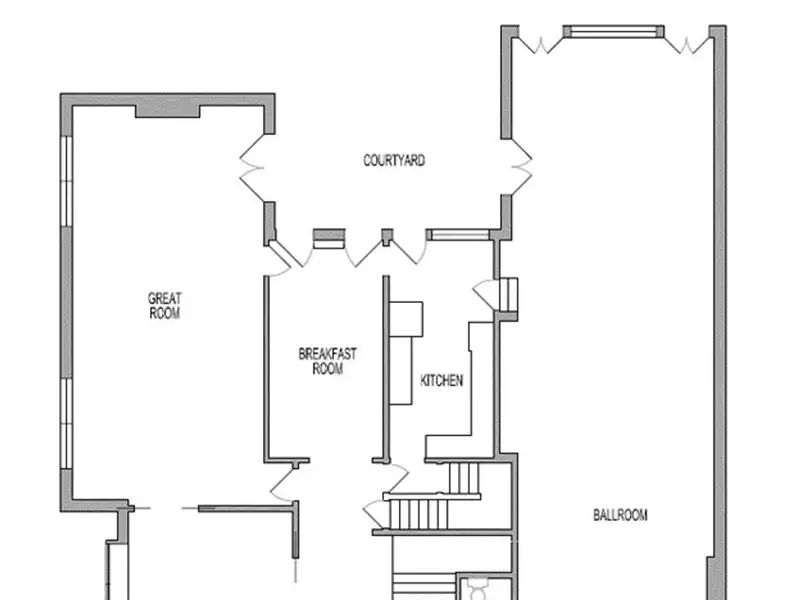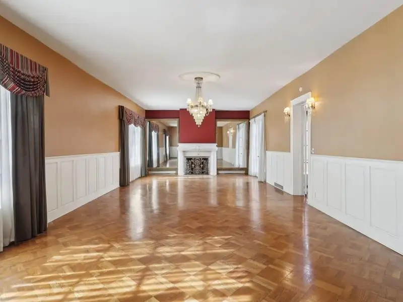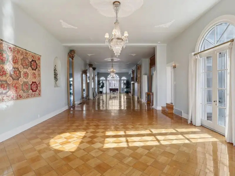 - Grand ballroom with balcony and parquet floors