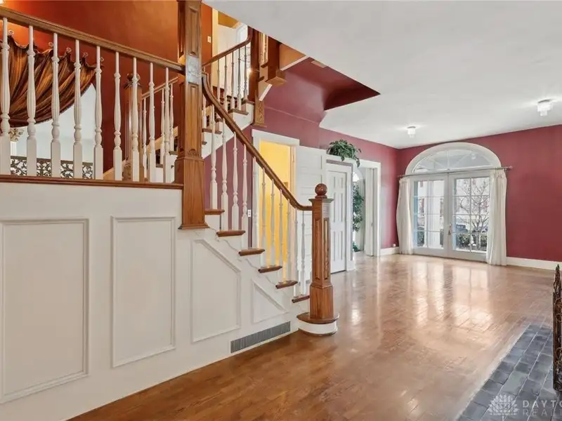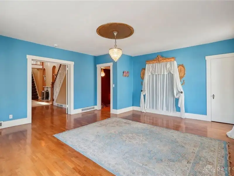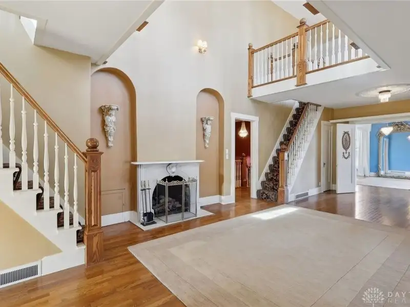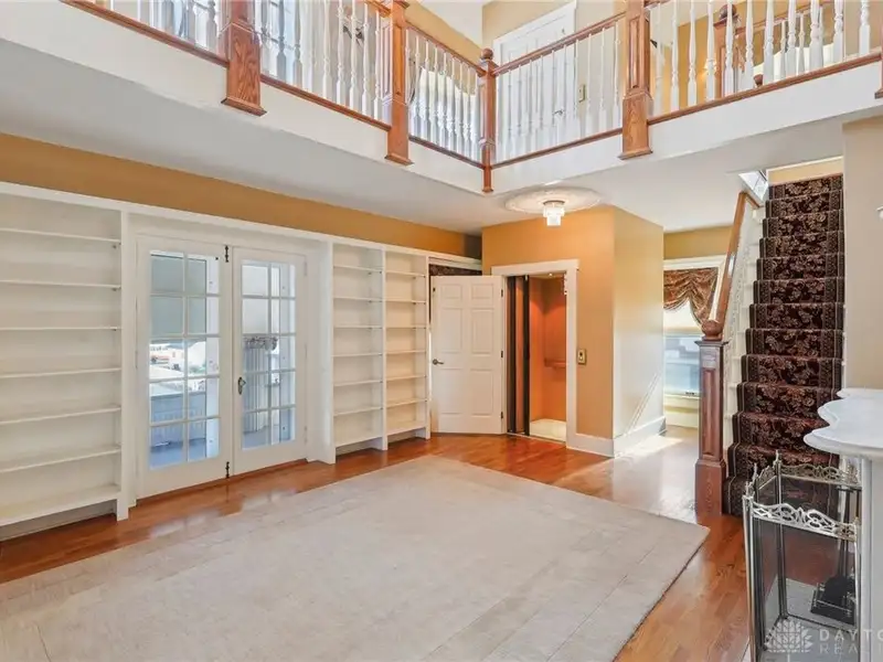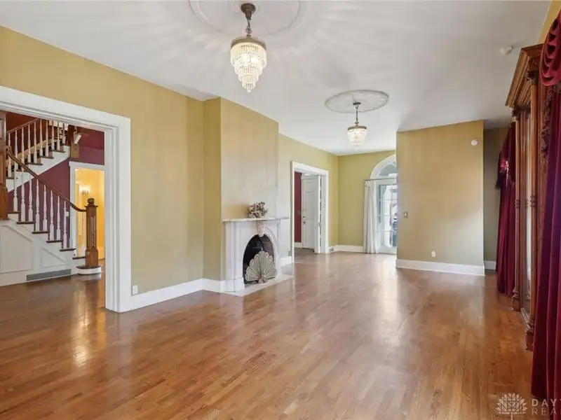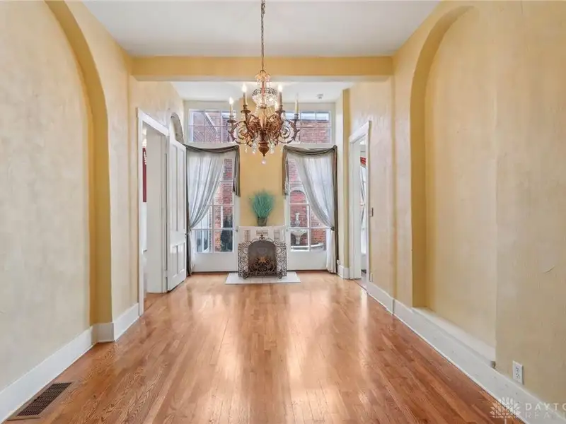 - Grand ballroom with balcony and parquet floors