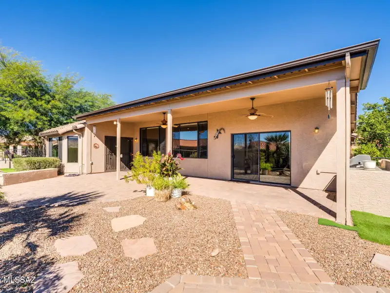 - Backyard with covered patio and built-in BBQ